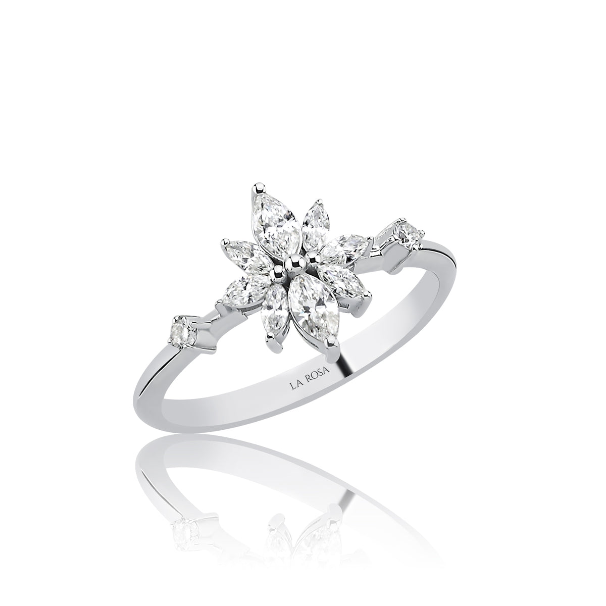 Markiz Pırlanta Çiçeği Beyaz Altın Yüzük