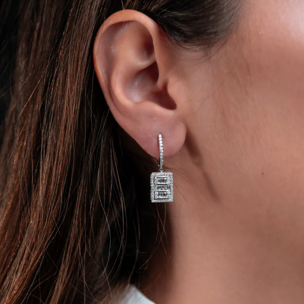 Mitolojik Medusa’nın etkileyici ve büyüleyici bakışlarından ilham alınarak tasarlanan bu beyaz altın küpeler, zarif baget pırlantalarıyla ışığı yakalayıp her harekette büyüleyici bir parlaklık sunar. Beyaz altın pırlantalı küpeler, zarafeti ve şıklığı bir araya getirerek her özel anınızı unutulmaz kılar.
