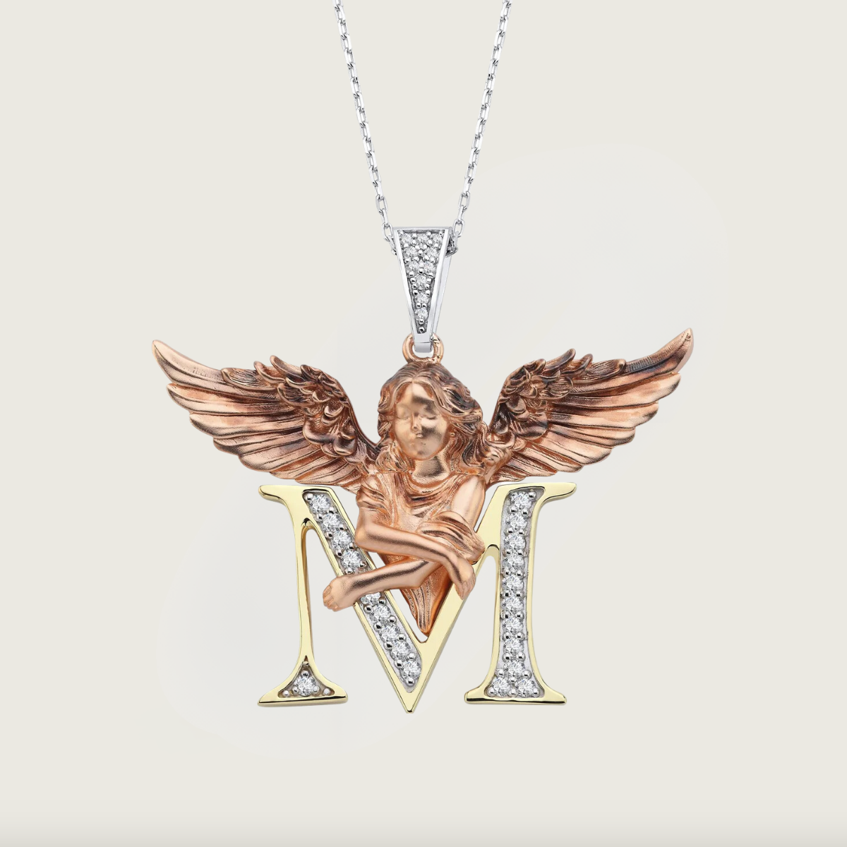 Melek figürüyle detaylandırılmış ve harf tasarımıyla birleşen bu eşsiz kolye, tarzınıza anlam katan bir dokunuş sunuyor. İki tonlu yapısı ve pırlanta detaylarıyla göz alıcı bir parlaklığa sahip olan bu parça, hem manevi değerleri hem de estetik zarafeti bir araya getiriyor. Özgün tasarımı ve dikkat çeken işçiliğiyle bu kolye, hem özel anlarınızda hem de günlük hayatınızda vazgeçilmez bir aksesuar olacak.