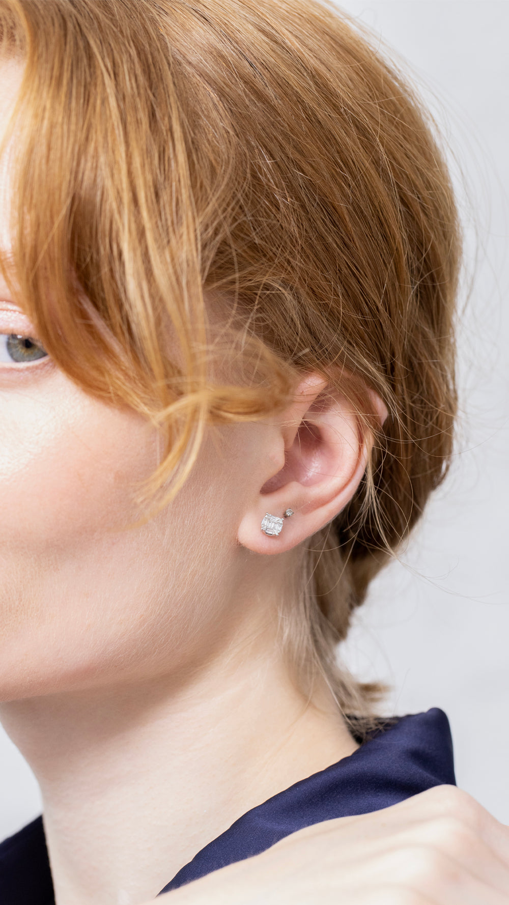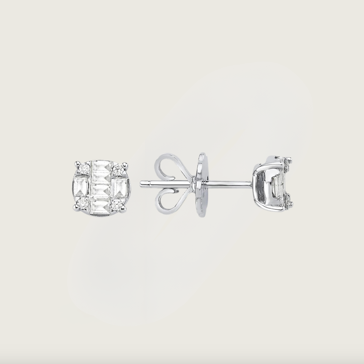Minimal Beyaz Işık Baget Pırlanta Küpe