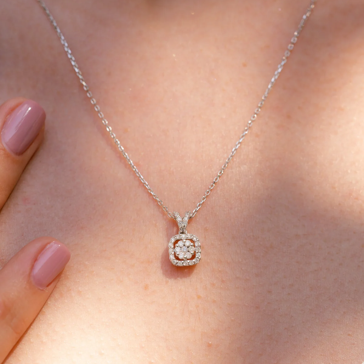 Zarif tasarımıyla göz alıcı bir şıklık sunan Minimal Pırlanta Kolye, her anınıza ışıltı katmaya hazır. Pırlantaların çevresini sardığı çiçek motifi, modern ve şık bir görünüm yaratırken, beyaz altın renk tonlarıyla zarafeti ön plana çıkarıyor.