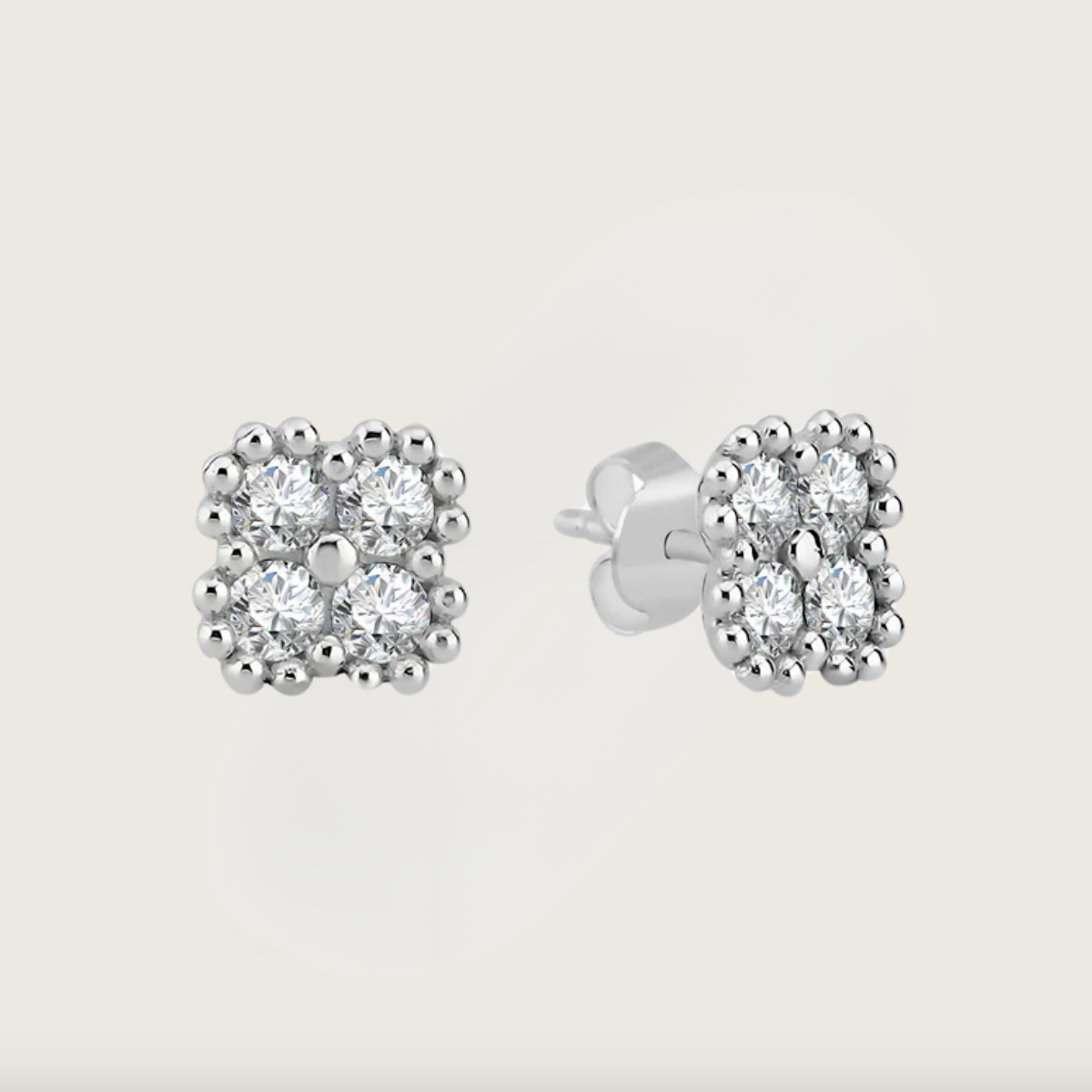 Minimal Çiçek Beyaz Altın Pırlanta Küpe