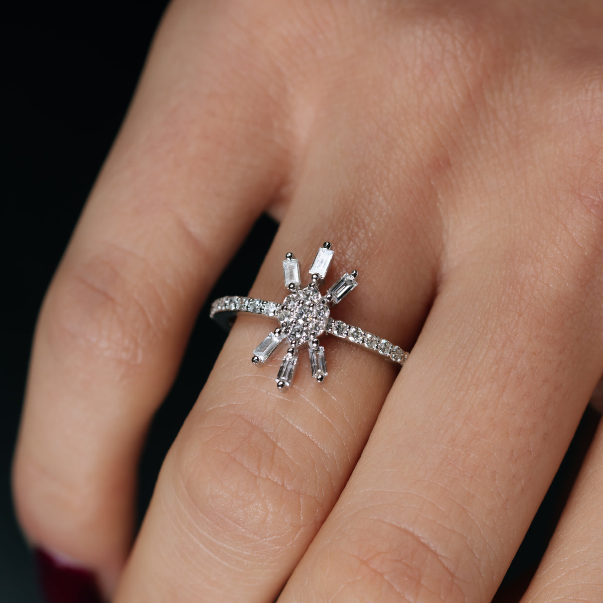 Zarafeti ve sadeliği bir araya getiren şık bir tasarımdır. İnce ve hafif yapısı, pırlantanın baget kesimi ile birleşerek göz alıcı bir ışıltı sunar. Bu yüzük, günlük kullanımda ya da özel anlarda mükemmel bir seçenek olup, stilinize zarif bir dokunuş katmak için tasarlandı.