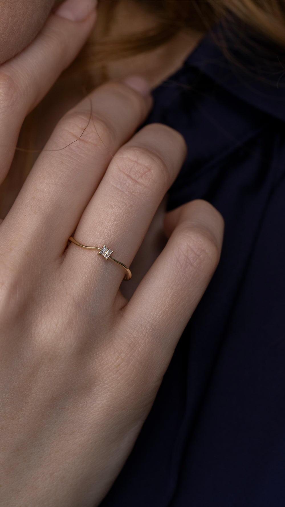 Minimal Tasarımlı Altın Baget Pırlanta Yüzük