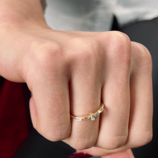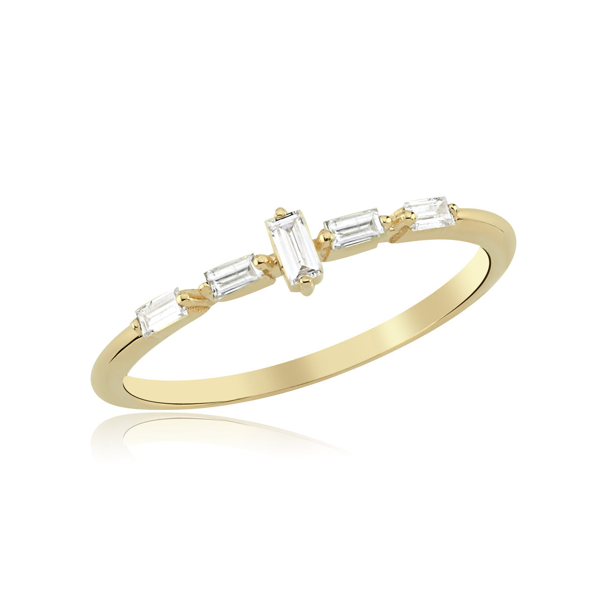 Minimal Zarafet Altın Baget Pırlanta Yüzük