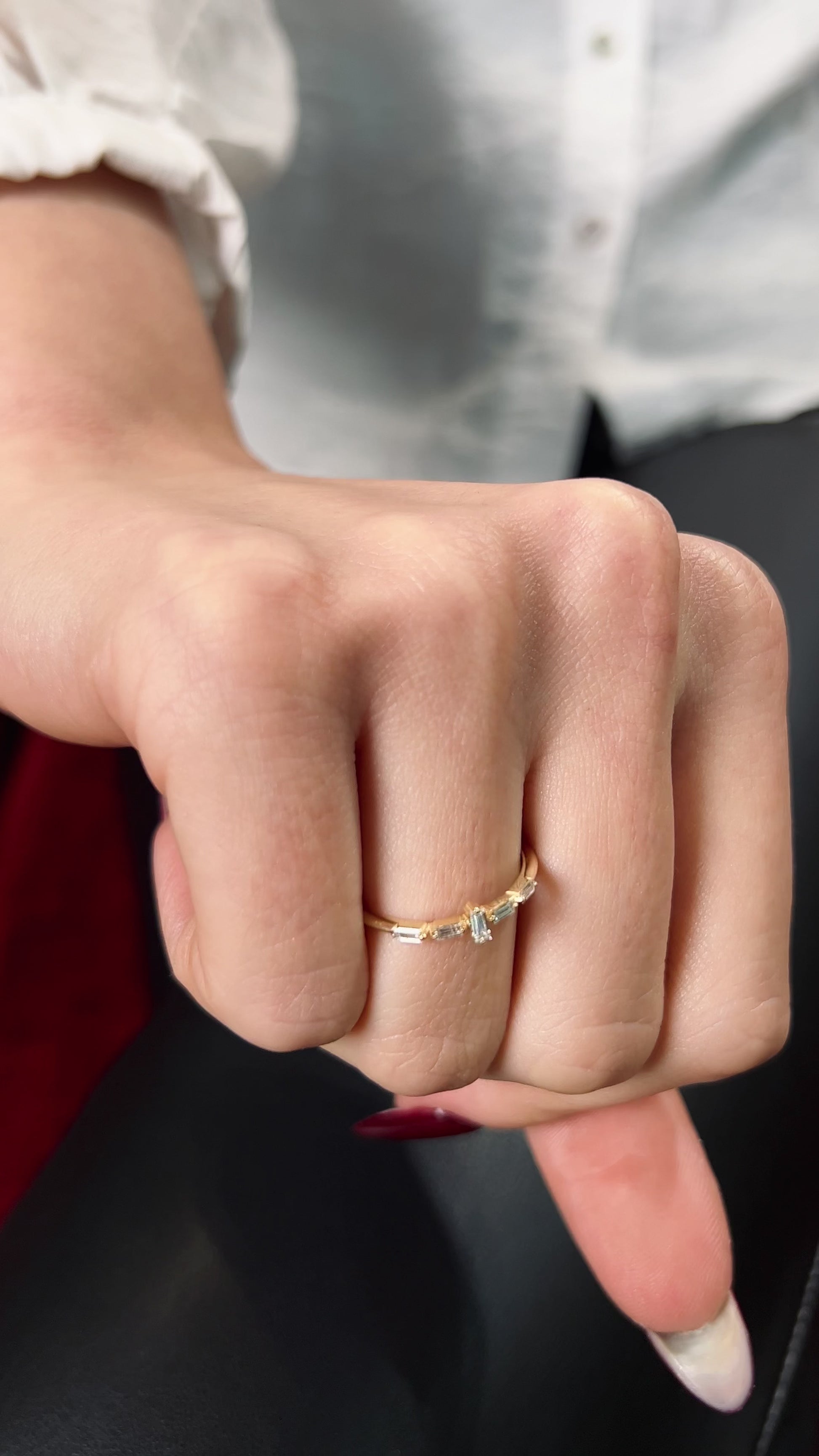 Bu zarif ve ince tasarıma sahip Minimal Zarafet Altın Baget Pırlanta Yüzük, sadeliğiyle büyüleyen ve her tarza kolayca uyum sağlayan bir aksesuar. Özel olarak seçilen baget kesim pırlantaların altın şıklığıyla birleşimi, modern ve minimal bir görünüm sunuyor.