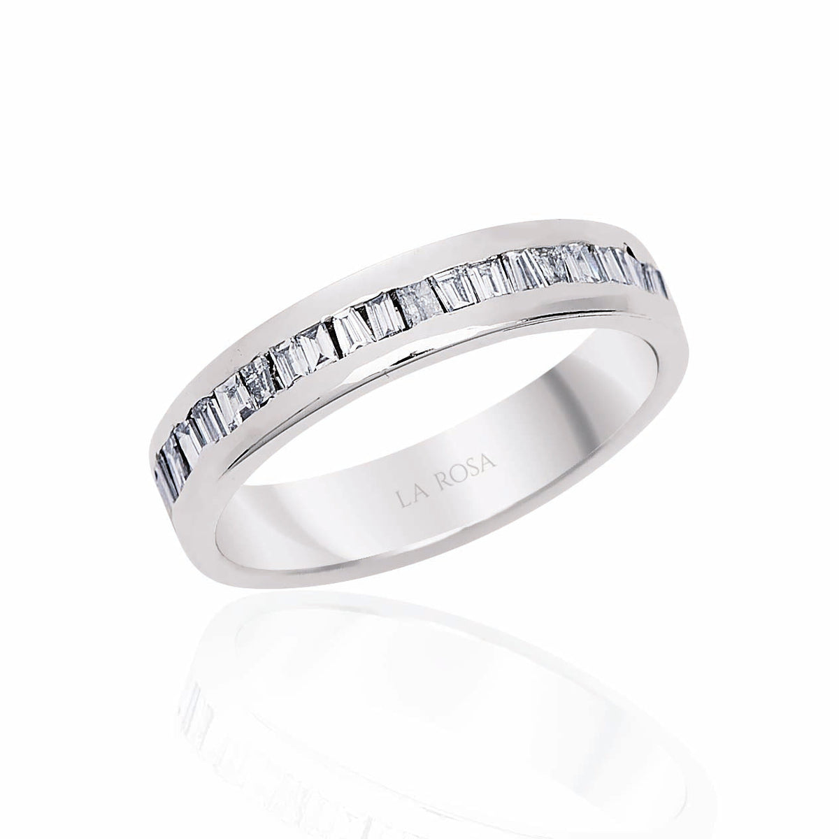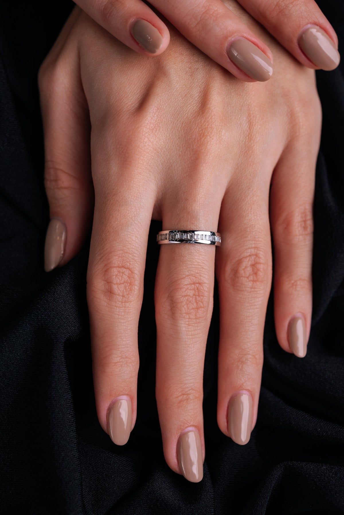 Modern Baget Kesim Pırlantalı Beyaz Altın Yüzük