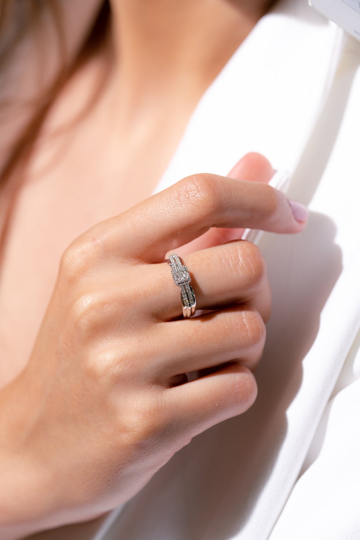 Minimalist çizgilerle yeniden tasarlanan bu baget pırlanta yüzük, modern şıklığın en net yansıması. Beyaz altının pürüzsüz parlaklığı ve keskin hatlı baget pırlantalar, sofistike bir denge sunuyor. Göz alıcı tasarımıyla her gün rahatça takabileceğiniz bir parça olan bu yüzük, stilinize çağdaş bir dokunuş katıyor.