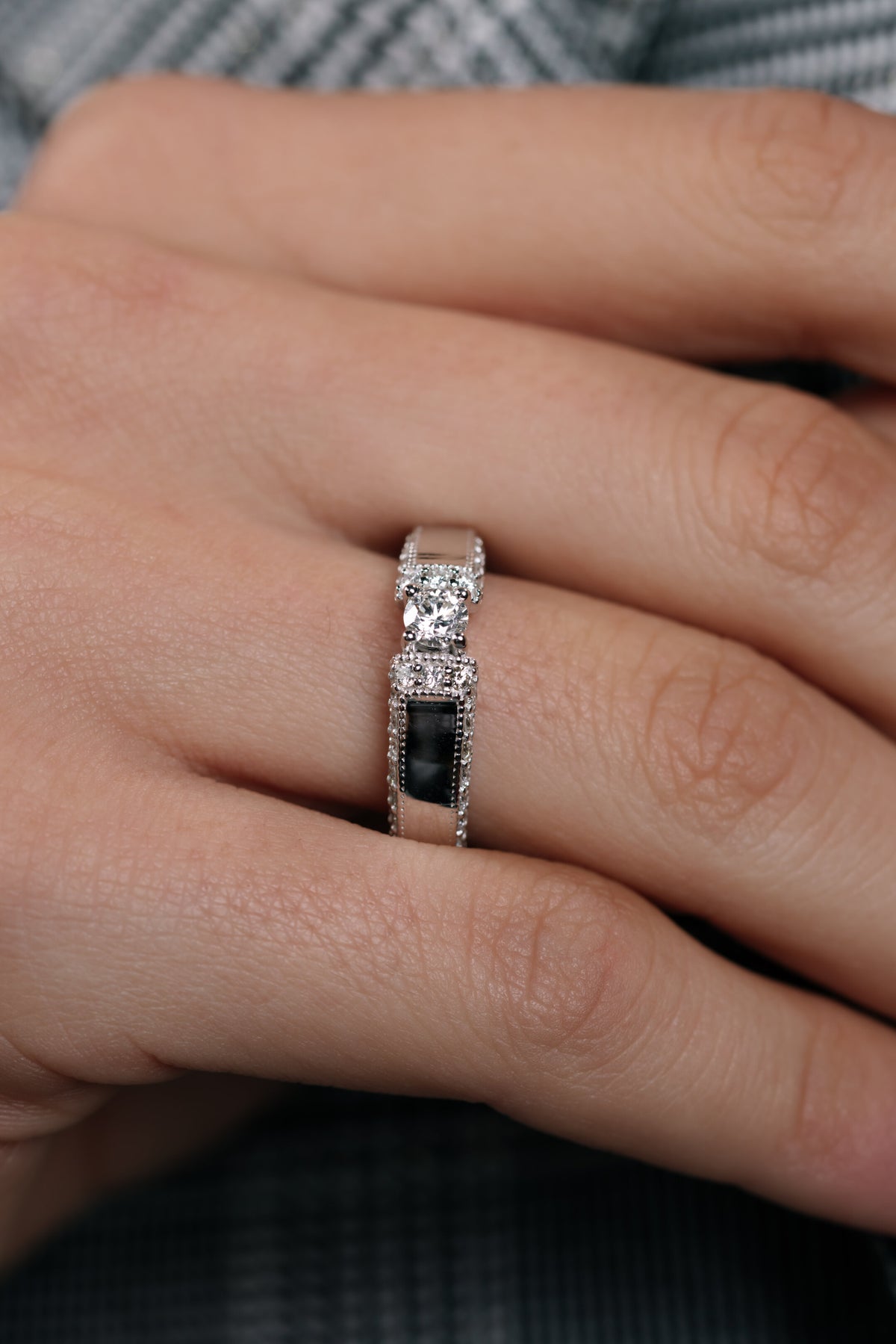 Modern Hatlar Tektaş Pırlanta Yüzük, pırlantanın zarafetini geometrik detaylarla buluşturuyor. Beyaz altın üzerine yerleştirilmiş bu yüzük, hem günlük şıklığınızı tamamlayacak hem de özel anlarınızı taçlandıracak bir parça sunuyor. Keskin hatları ve göz alıcı pırlantasıyla, modern stil arayanlar için mükemmel bir seçimdir.