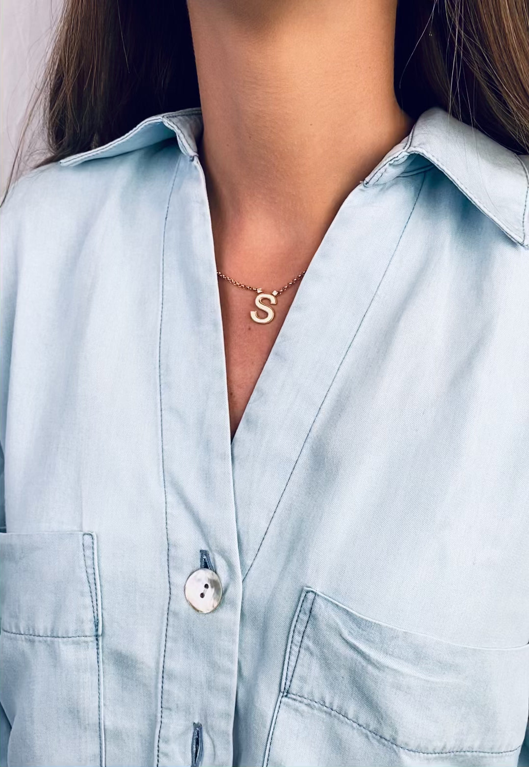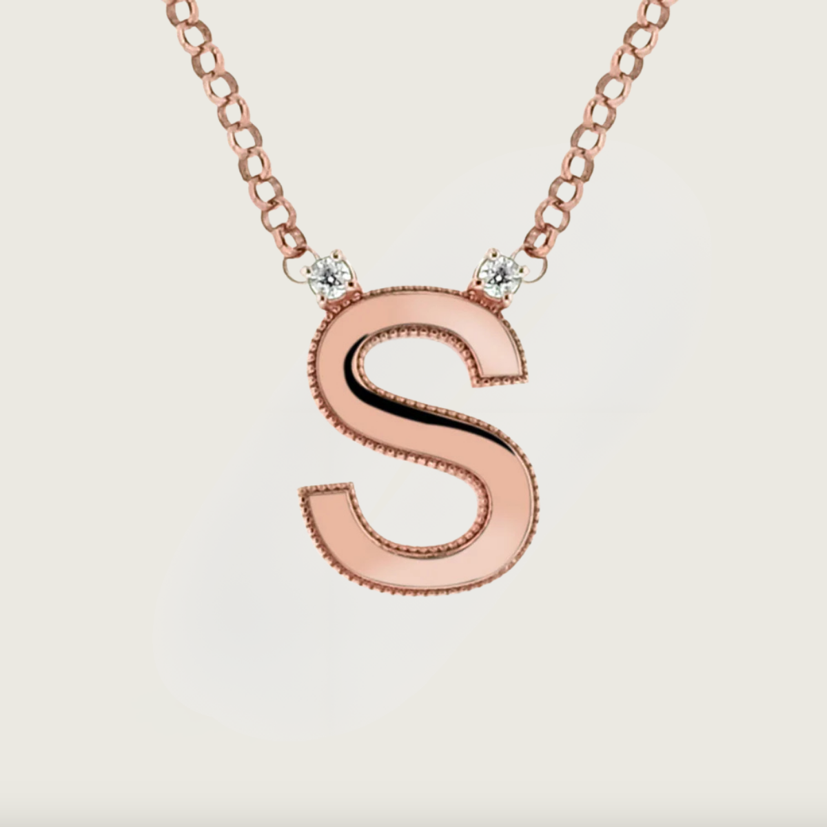 Monogram Parıltısı Rose Altın Pırlanta S Harf Kolye
