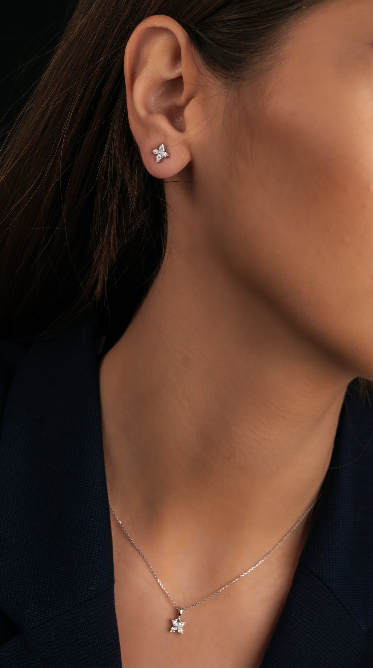 Beyaz altın üzerine yerleştirilmiş marquise kesim pırlantalarıyla zarafetinizi tamamlayacak. 14 ayar beyaz altından üretilen bu pırlanta küpe, minimalist ve etkileyici tasarımı ile her türlü kombin için ideal bir aksesuar. Pırlantaların parlaklığı, zarif detaylarla bir araya gelerek özel anlarınızda veya günlük kullanımda ışıldamanızı sağlayacak.