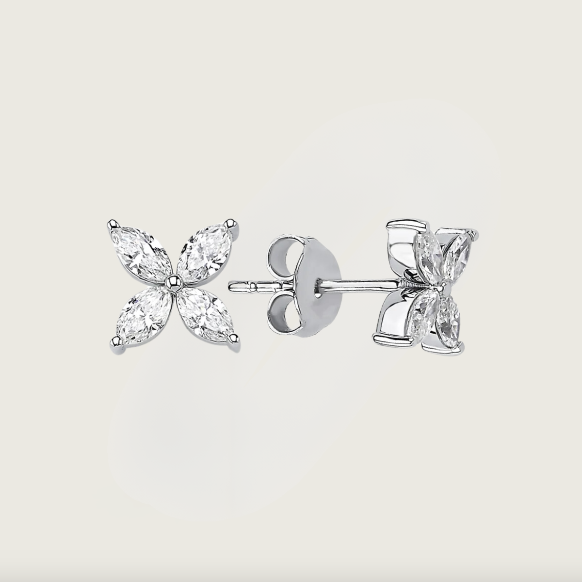 Moonlight Prenses Beyaz Altın Marquise Pırlanta Küpe