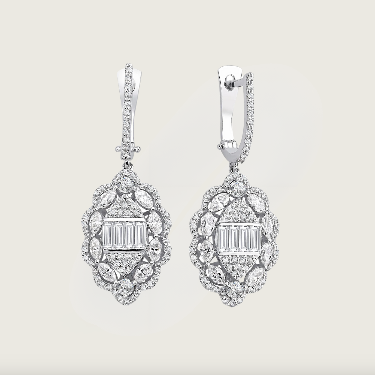 Nefertiti'nin Zarafeti Beyaz Altın Baget Pırlanta Küpe