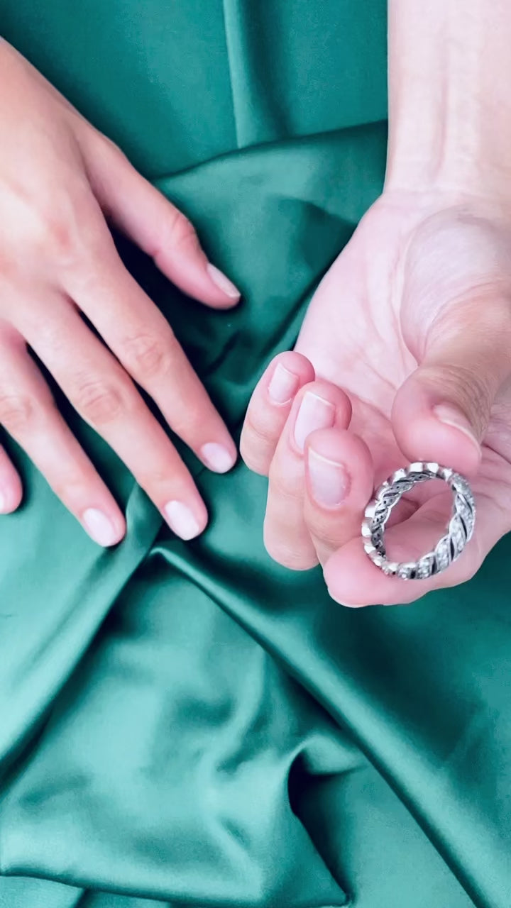Örgü deseni, yüzüğe benzersiz bir dokunuş katarken, pırlanta taşların büyüleyici ışıltısı göz alıyor. Hem günlük şıklığınızı tamamlayacak, hem de özel günlerde mükemmel bir aksesuar olacak bu yüzük, stilinize sofistike bir dokunuş katacak. Bu yüzük, tamtur özelliği ile sonsuz aşkın simgesi olarak evlilik ve nişan yüzüğü olarak da tercih edilebilir.