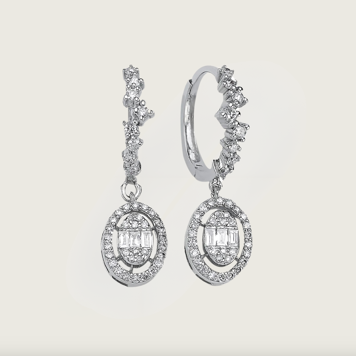 Oval Büyü Beyaz Altın Baget Pırlantalı Küpe