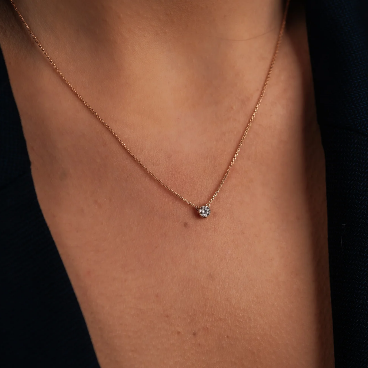 Oval Tektaş Pırlanta Rose Altın Kolye