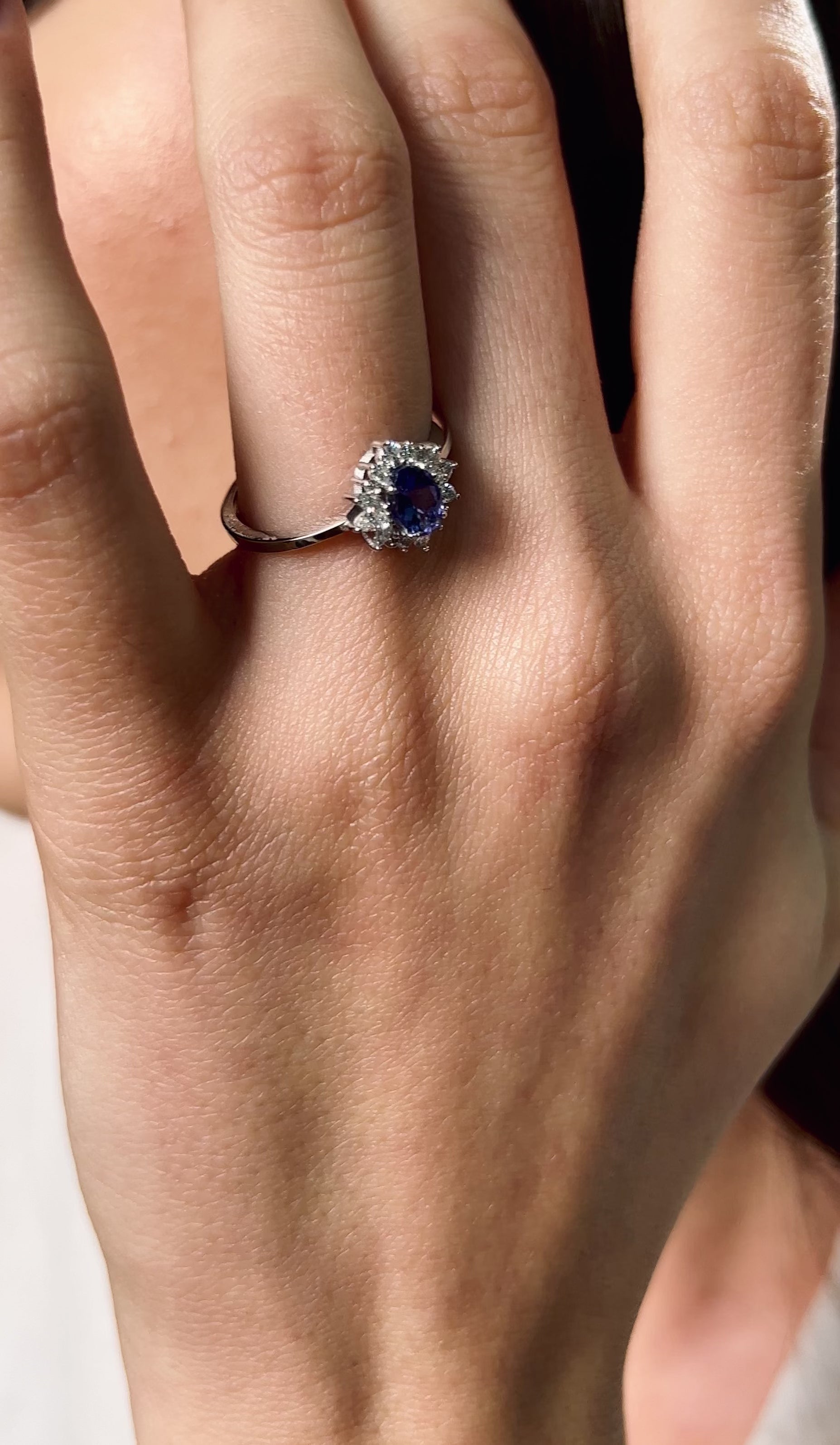 Merkezinde göz alıcı oval kesim topaz taşı bulunan bu yüzük, pırlantalarla çevrelenmiş beyaz altın tasarımıyla zarif bir duruş sergiliyor. Topazın büyüleyici mavi tonları, pırlantaların ışıltısıyla harmanlanarak dikkat çekici bir uyum yaratıyor. Bu özel tasarım, stilinize sofistike bir dokunuş katmak için mükemmel bir seçim ve unutulmaz anlarınıza eşlik edecek nadide bir parça.