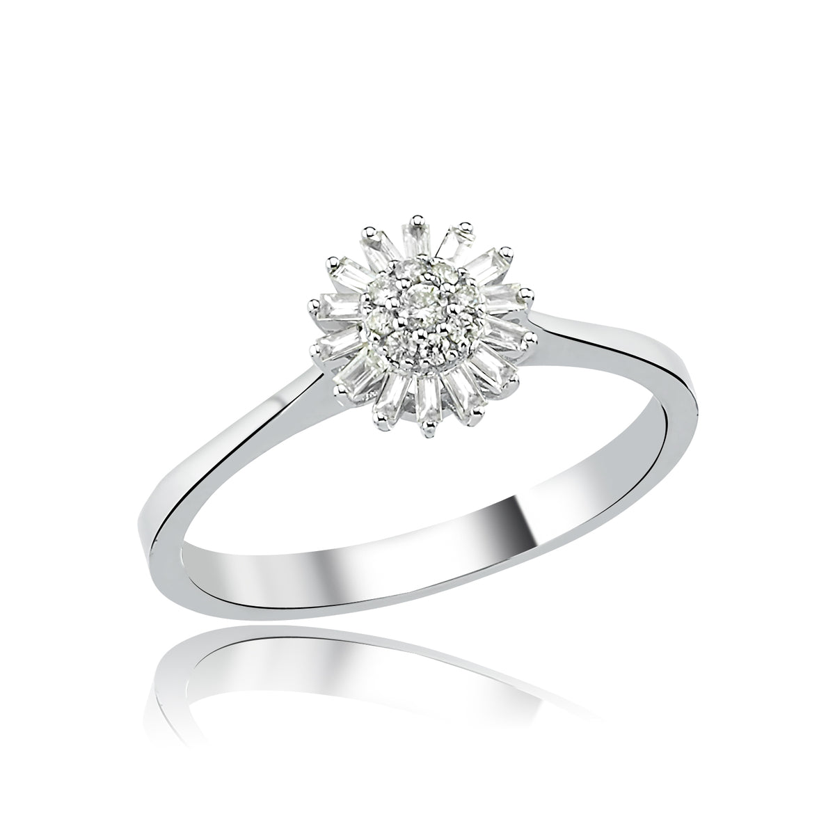 Zarif ve taze bir görünümle tasarlanmış eşsiz bir parça. Baget kesim pırlantalar, yüzüğün çiçek motifini andıran tasarımına mükemmel bir şekilde entegre edilerek, her açıdan göz alıcı bir ışıltı sunuyor. Bu özel parça, doğanın zarafetini takılarınıza taşıyarak stilinizi tamamlayacak.