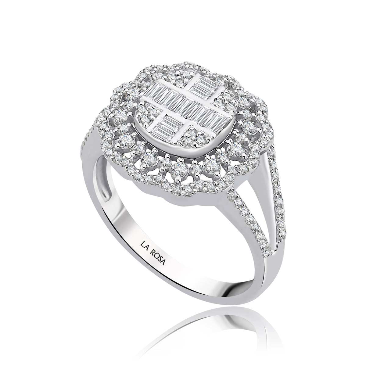 Parıltılı Çiçek Bahçesi, adeta bir mücevher bahçesinden ilham alarak tasarlanmış bu büyüleyici yüzük, doğanın zarafetini ve ışıltısını parmaklarınıza taşıyor. Merkezdeki baget kesim pırlanta, göz alıcı yuvarlak kesim taşlarla çevrelenerek, adeta çiçeklerle bezeli bir bahçeyi andırıyor. İnce işçilikle dizilmiş taşların yarattığı ışık oyunu, her açıdan benzersiz bir parıltı sunuyor.