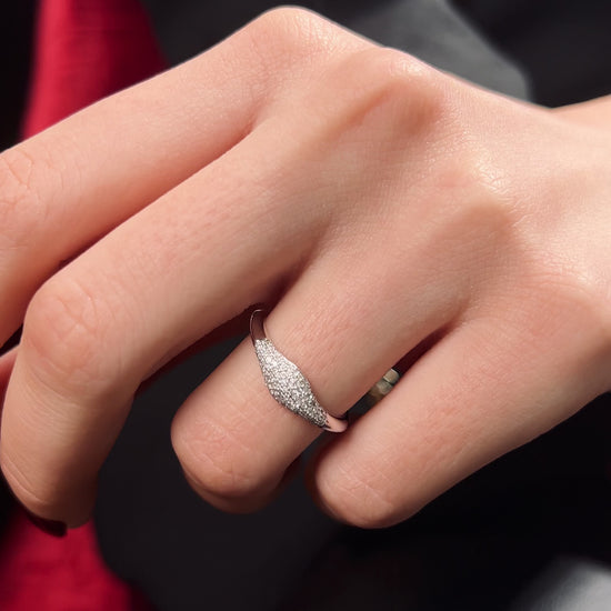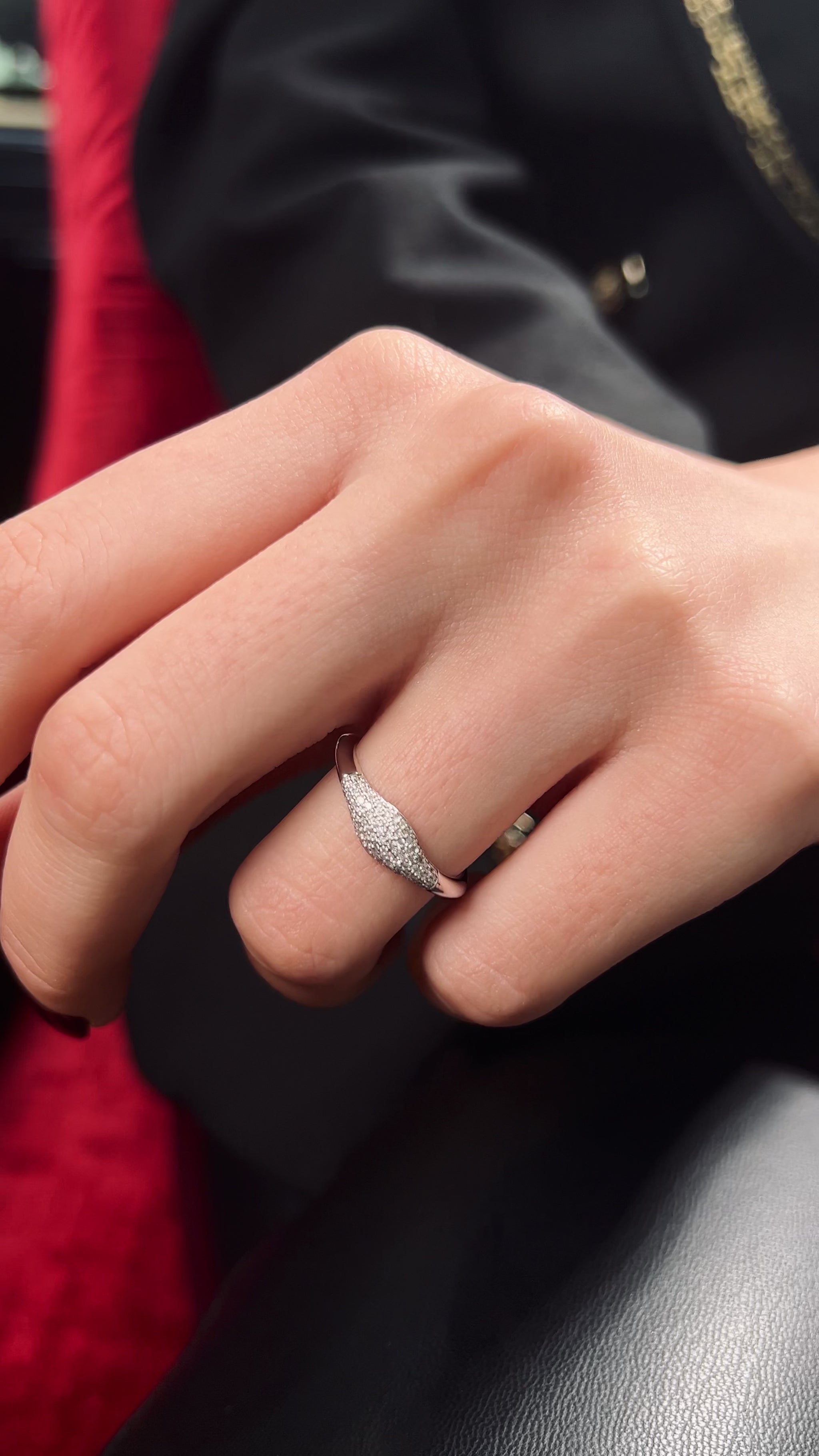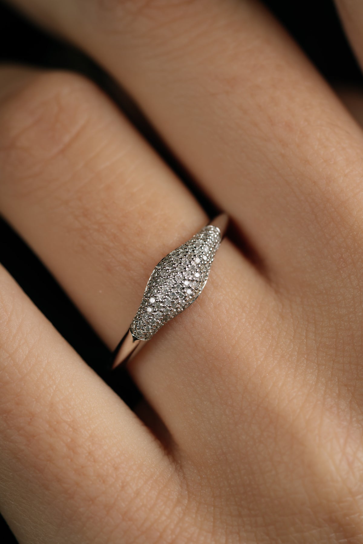 Pırıltılı Beyaz Altın Bombeli Pırlanta Yüzük