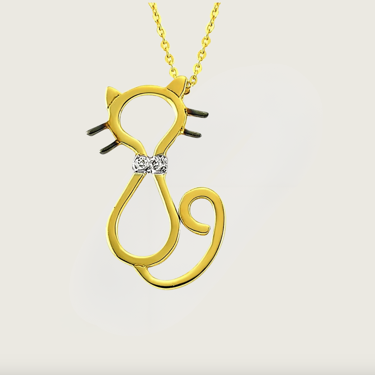 Pırlanta Fiyonk Detaylı Kedi Kolye