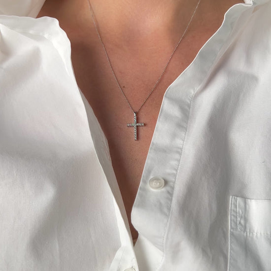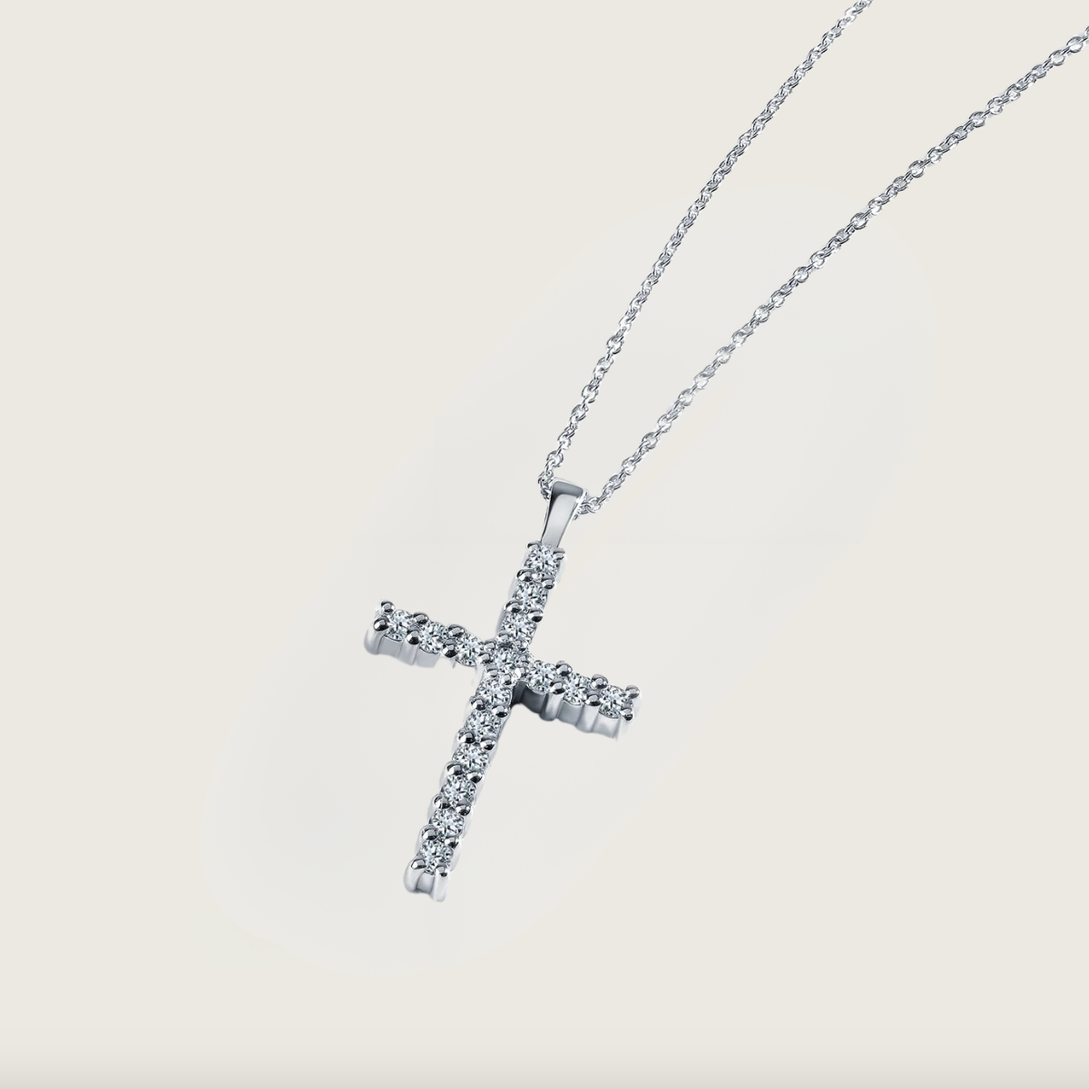 Pırlanta Taşlı Beyaz Altın Haç Kolye