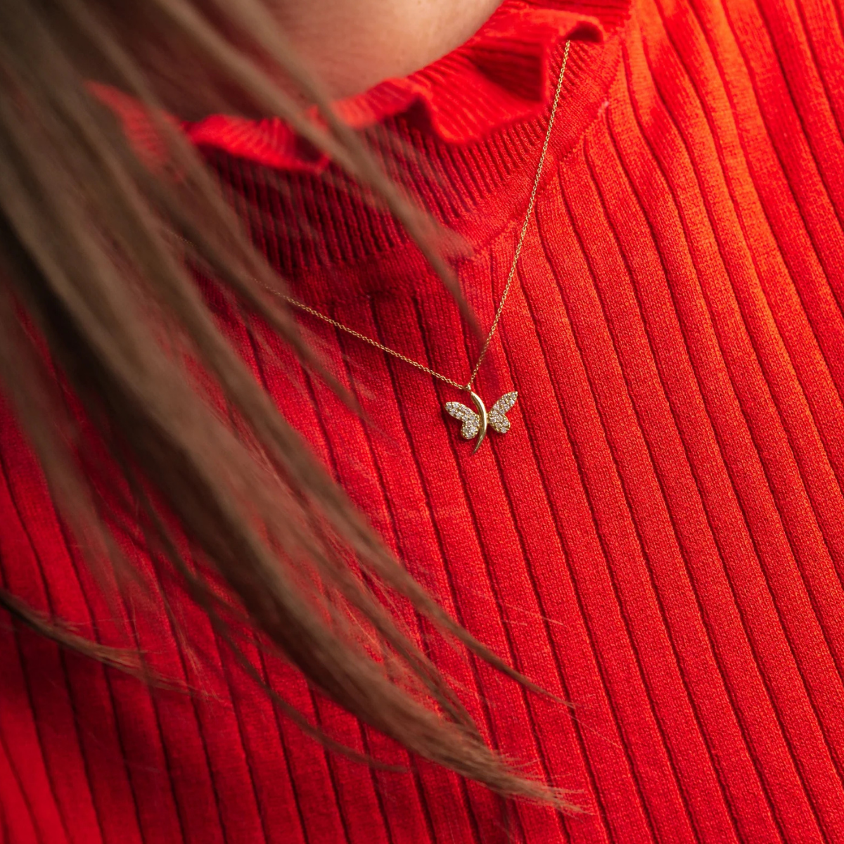 Pırlantalı Kelebek Altın Kolye