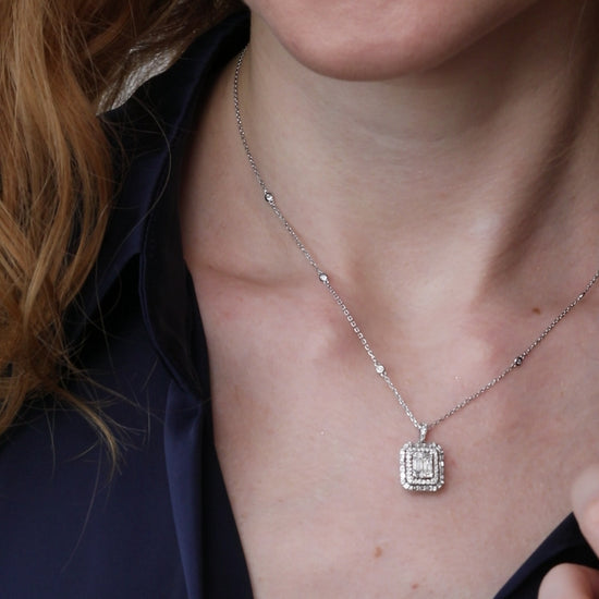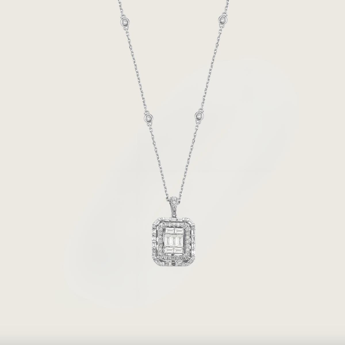 La Rosa’nın en özel koleksiyonlarından biri olan bu kolye, dikdörtgen formu ve farklı kesim pırlantalarla tasarlanmış olup, beyaz altının zarafeti ile birleşiyor. Baget kesim pırlantalar, klasik yuvarlak taşlarla bir araya gelerek kolyeye sofistike bir hava katmaktadır. Hem günlük şıklığınızda hem de özel davetlerde rahatlıkla kullanabileceğiniz bu kolye, zarafetin simgesi olacaktır.