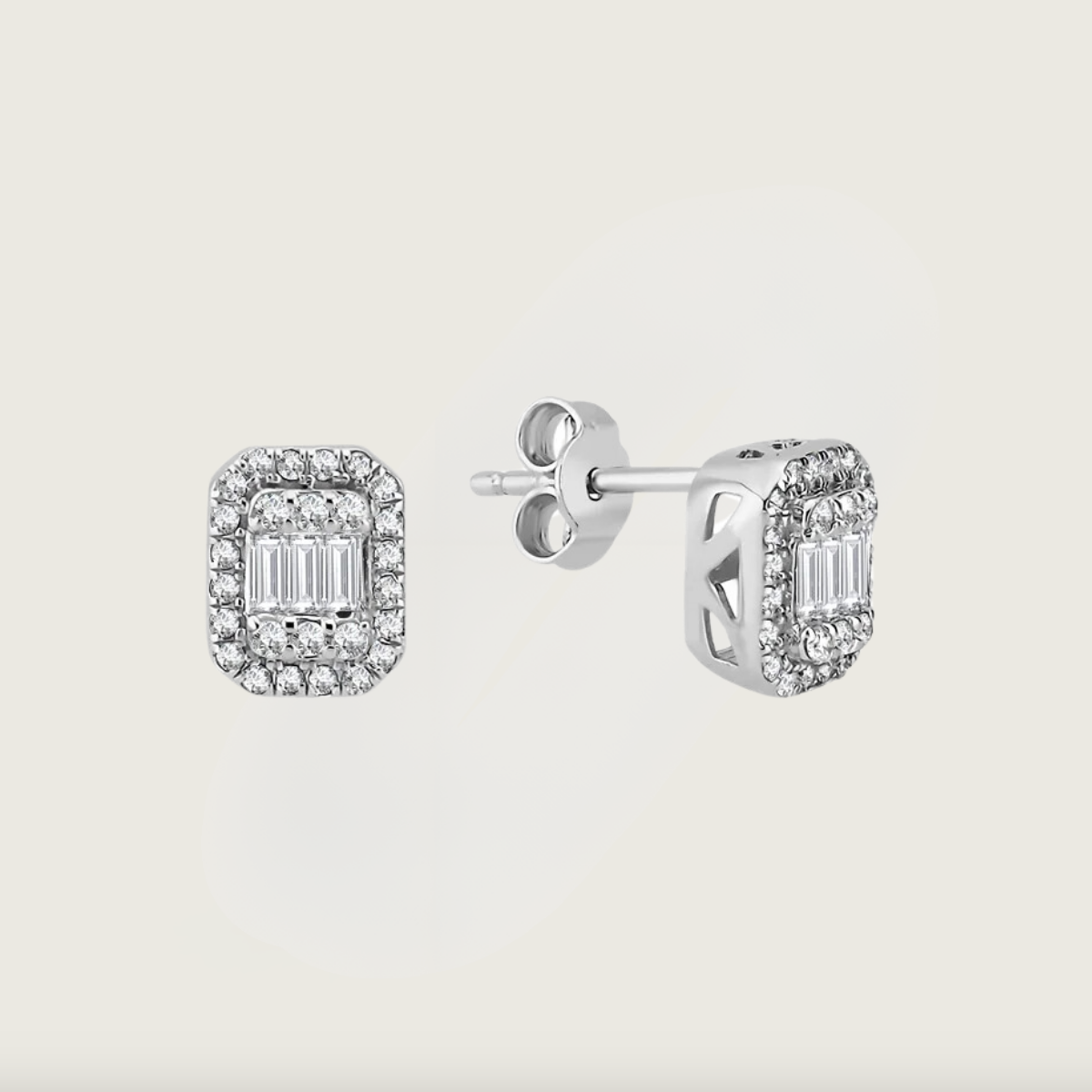 Kusursuz dikdörtgen formuyla asil bir duruş sergiler. Beyaz altın ve baget kesim pırlantalarla süslenmiş tasarım, sofistike bir stilin vurgusu niteliğinde. Baget pırlantaların ışıltısı her açıdan ışığı yakalayarak zarafetinizi ön plana çıkarır. Özel günlerde veya günlük kullanımda tercih edilebilecek bu küpe, her ortamda dikkatleri üzerine çeker.