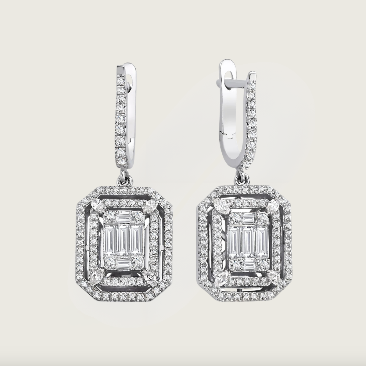 Ra'nın Işığı Beyaz Altın Baget Pırlanta Küpe
