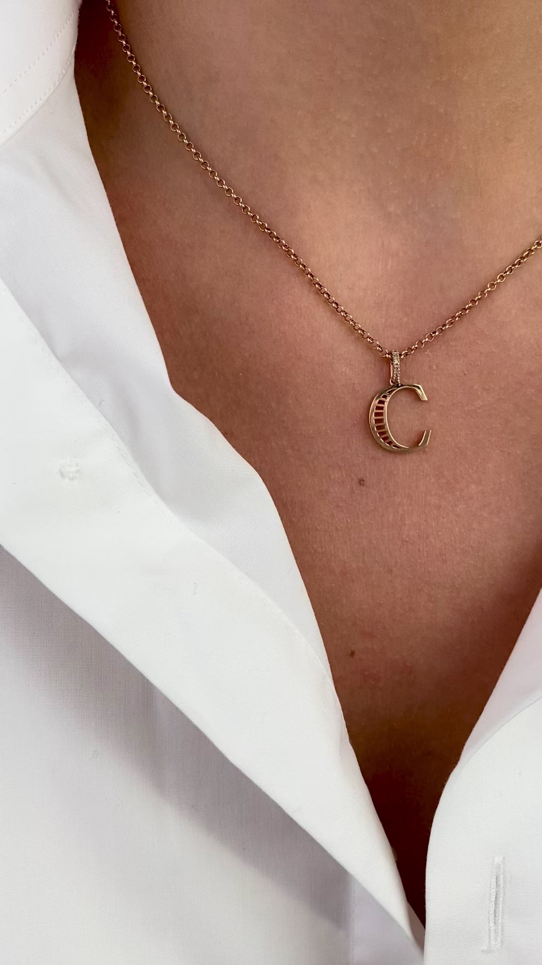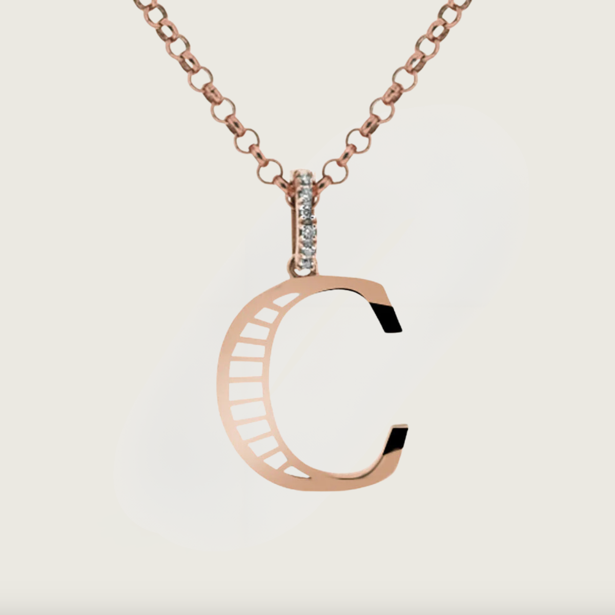 Rose Altın C Harfi Pırlanta Kolye