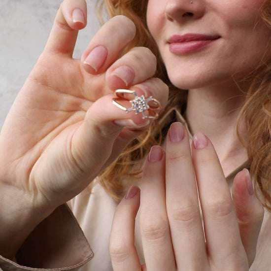 14 Ayar, Rose Altın Geometrik Pırlanta Yüzük, 2.17gr