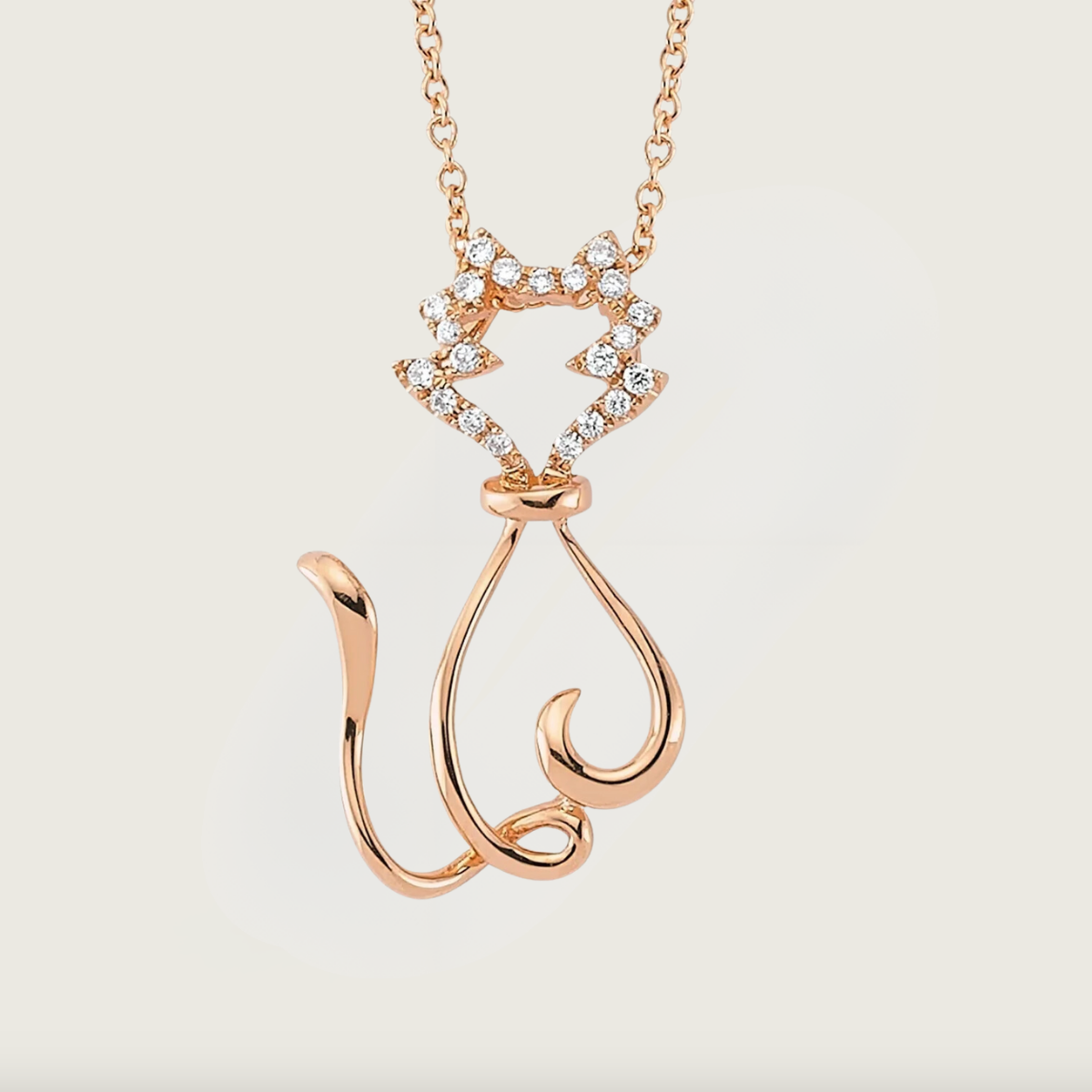 Rose Altın Kedi Figürlü Pırlanta Kolye