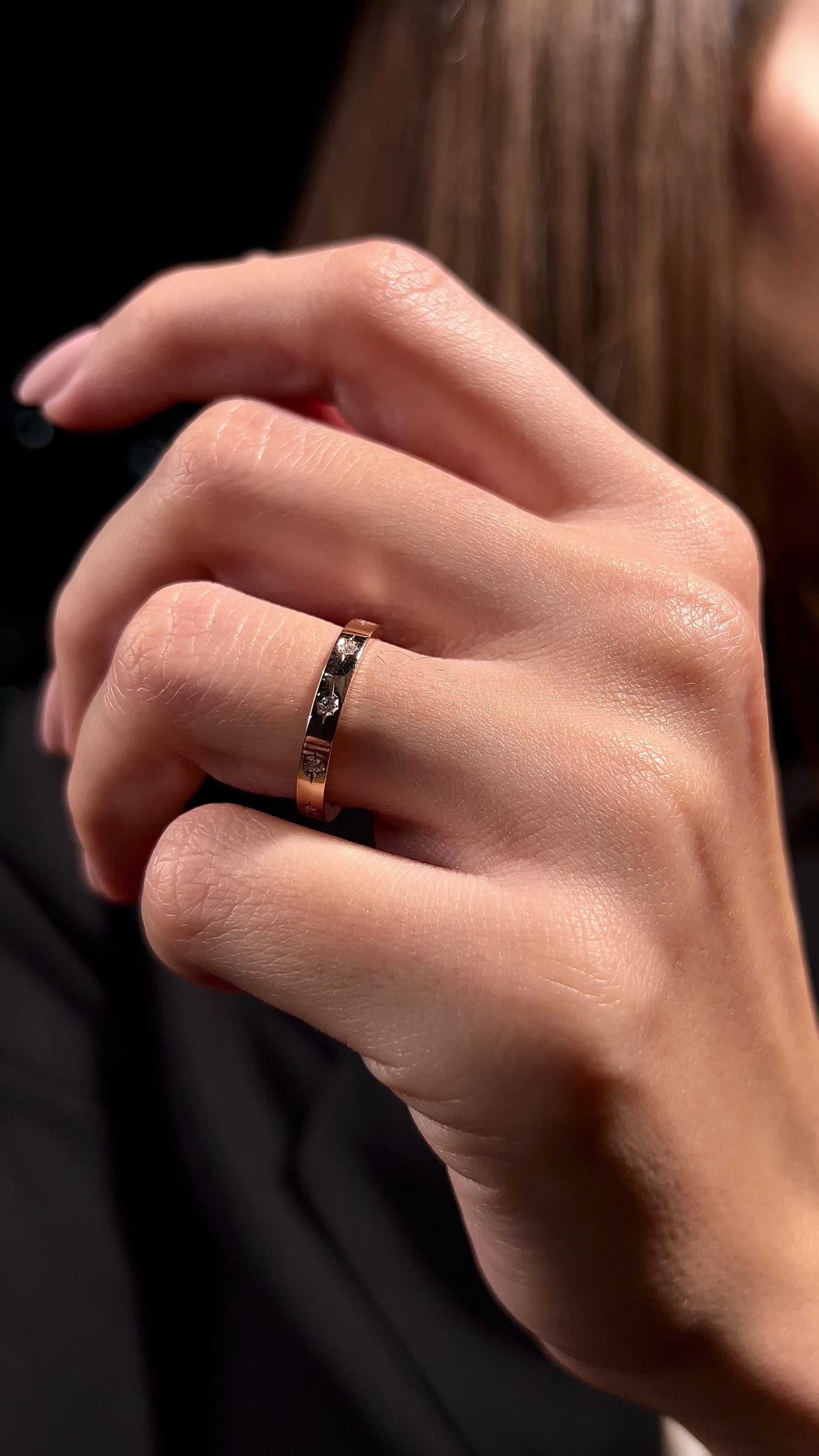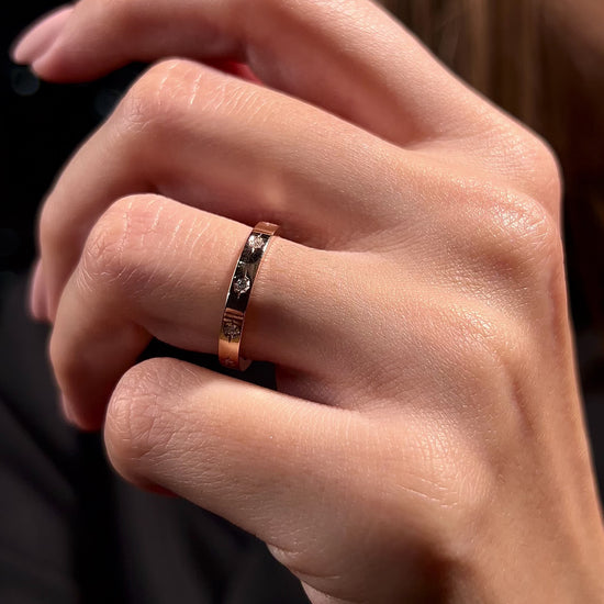 Rose altın yüzük, zarif ve minimal taş detaylarıyla hem günlük kullanımda hem de alyans olarak tercih edilebilecek ideal bir tasarımdır. Parlak taşlar, yüzüğün sıcak rose altın tonuyla mükemmel bir uyum yakalayarak modern ve sofistike bir görünüm sunar. Sade ama şık bir tarzı benimseyenler için hem tek başına zarif bir dokunuş hem de diğer yüzüklerle kombinleyerek kullanabileceğiniz bir aksesuar olarak öne çıkar. Zamansız bir şıklık arayanlar için mükemmel bir seçimdir.