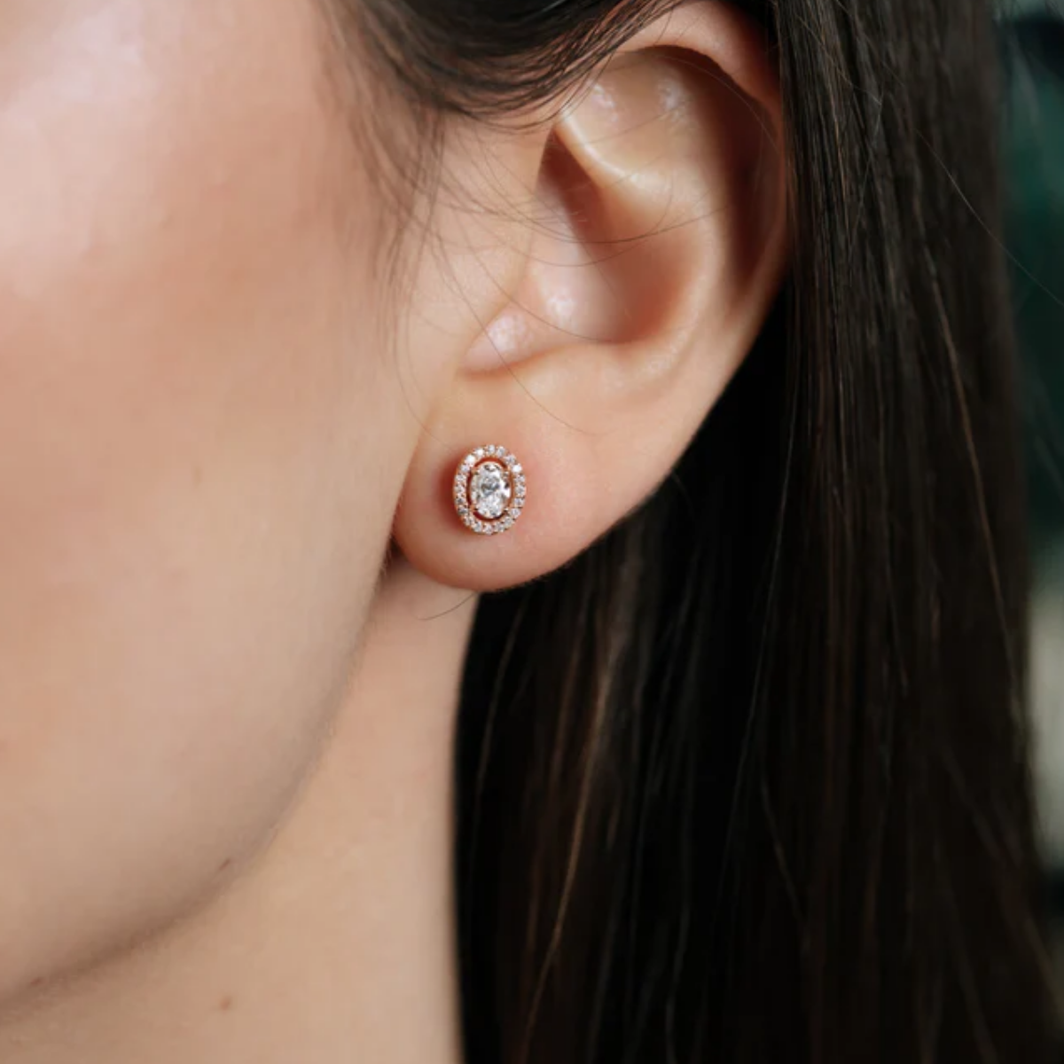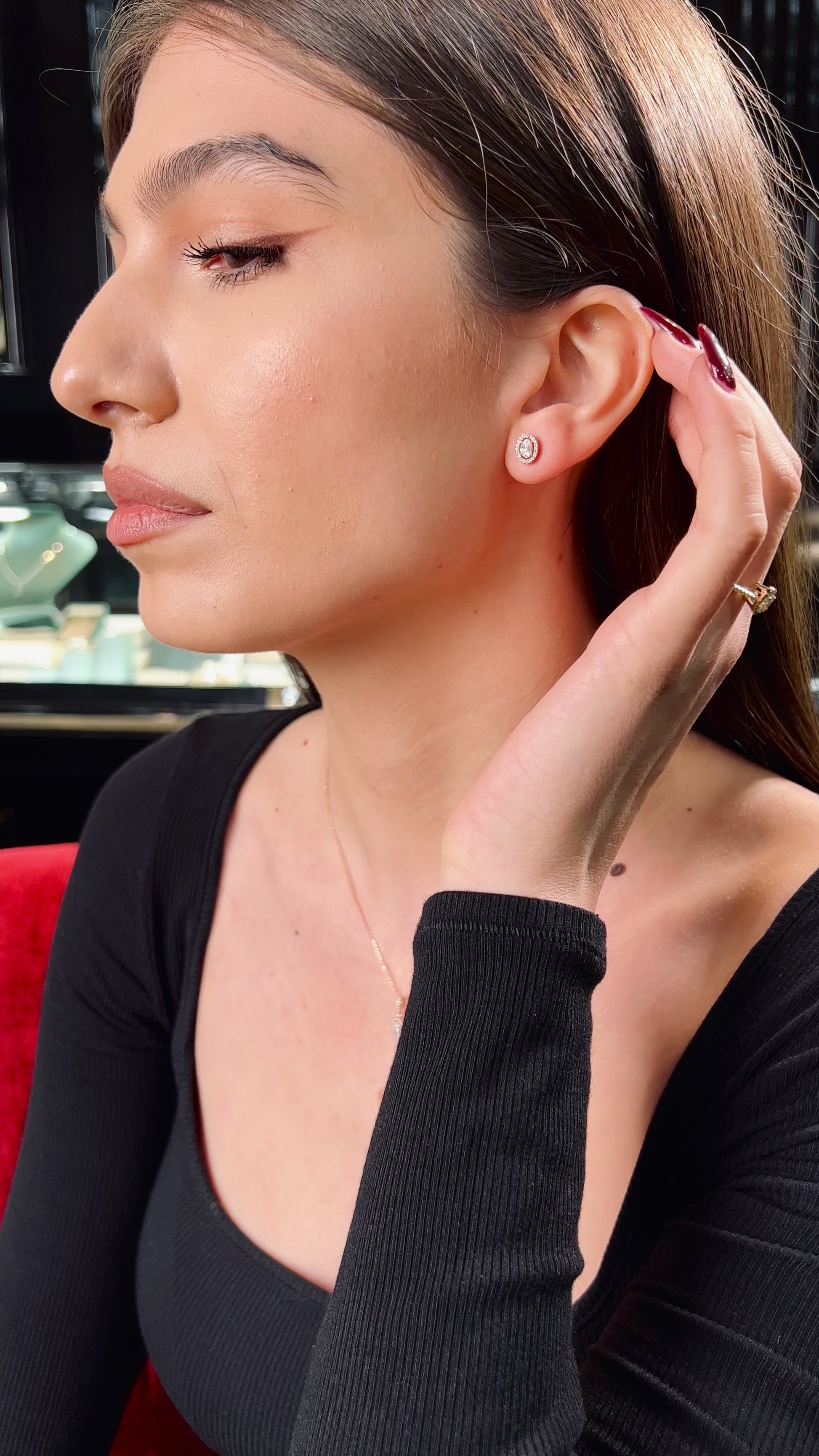 Rose Oval Beyaz Altın Pırlanta Küpe