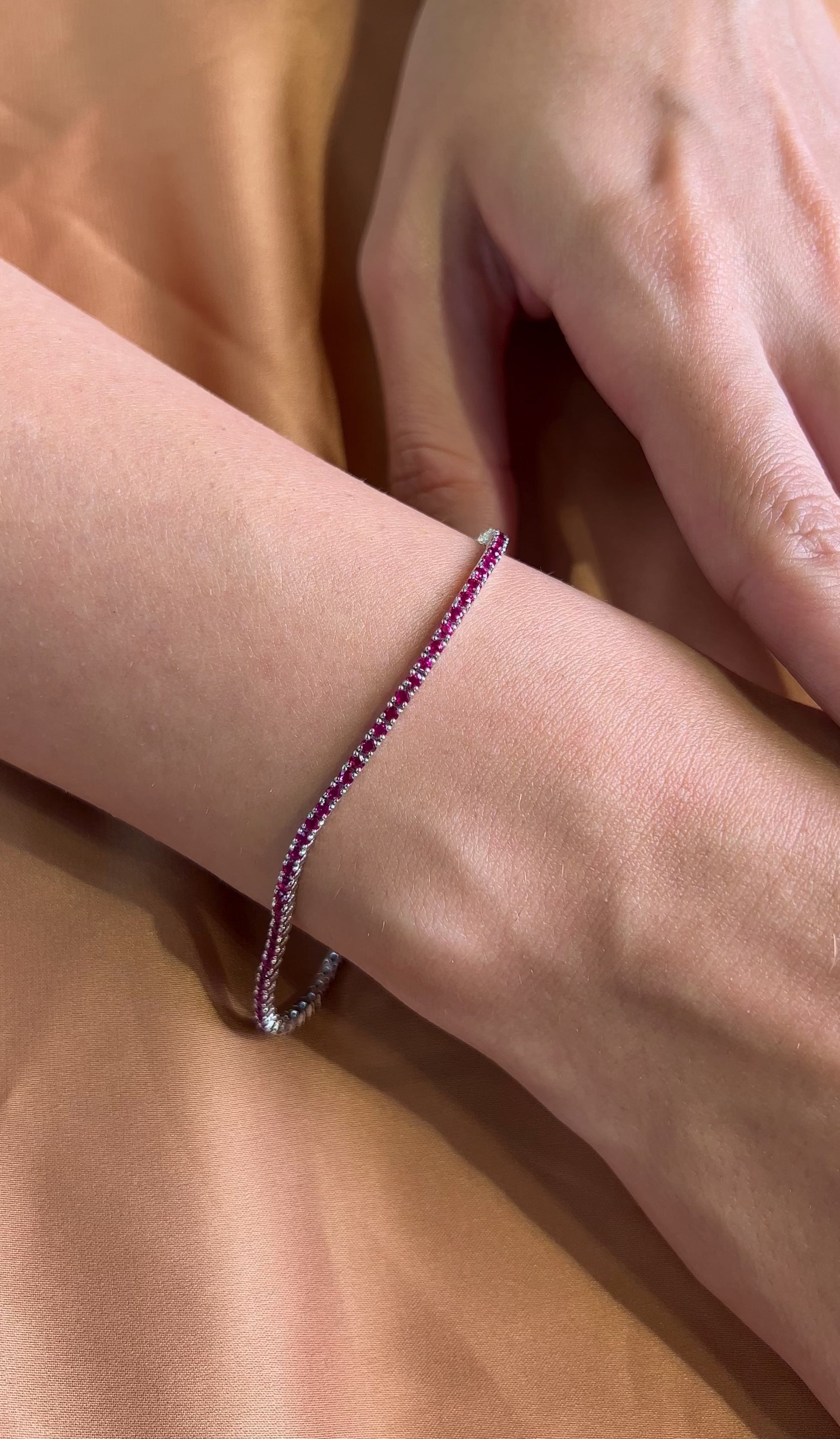 Ruby Işıltısı Beyaz Altın Pırlanta Bilekliği