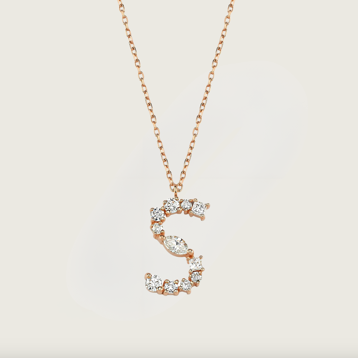 S Harf Pırlanta Rose Altın Kolye