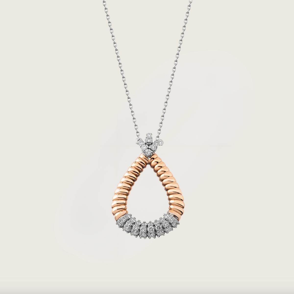 Bu zarif kolye, 14 Ayar beyaz ve roze altının muhteşem birleşimiyle tasarlanmıştır. Pırlantaların göz alıcı parıltısı ve damla formu, şıklığı ve zarafeti bir araya getirerek sofistike bir görünüm sunar. Günlük kullanımda ya da özel davetlerde tarzınıza eşsiz bir dokunuş katacak olan bu kolye, her anınıza ışıltı katmaya hazır.