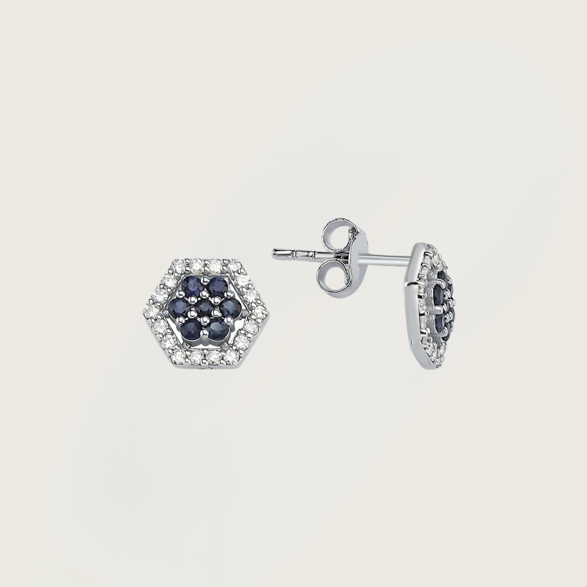 Safir Altıgen Beyaz Altın Küpe