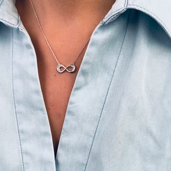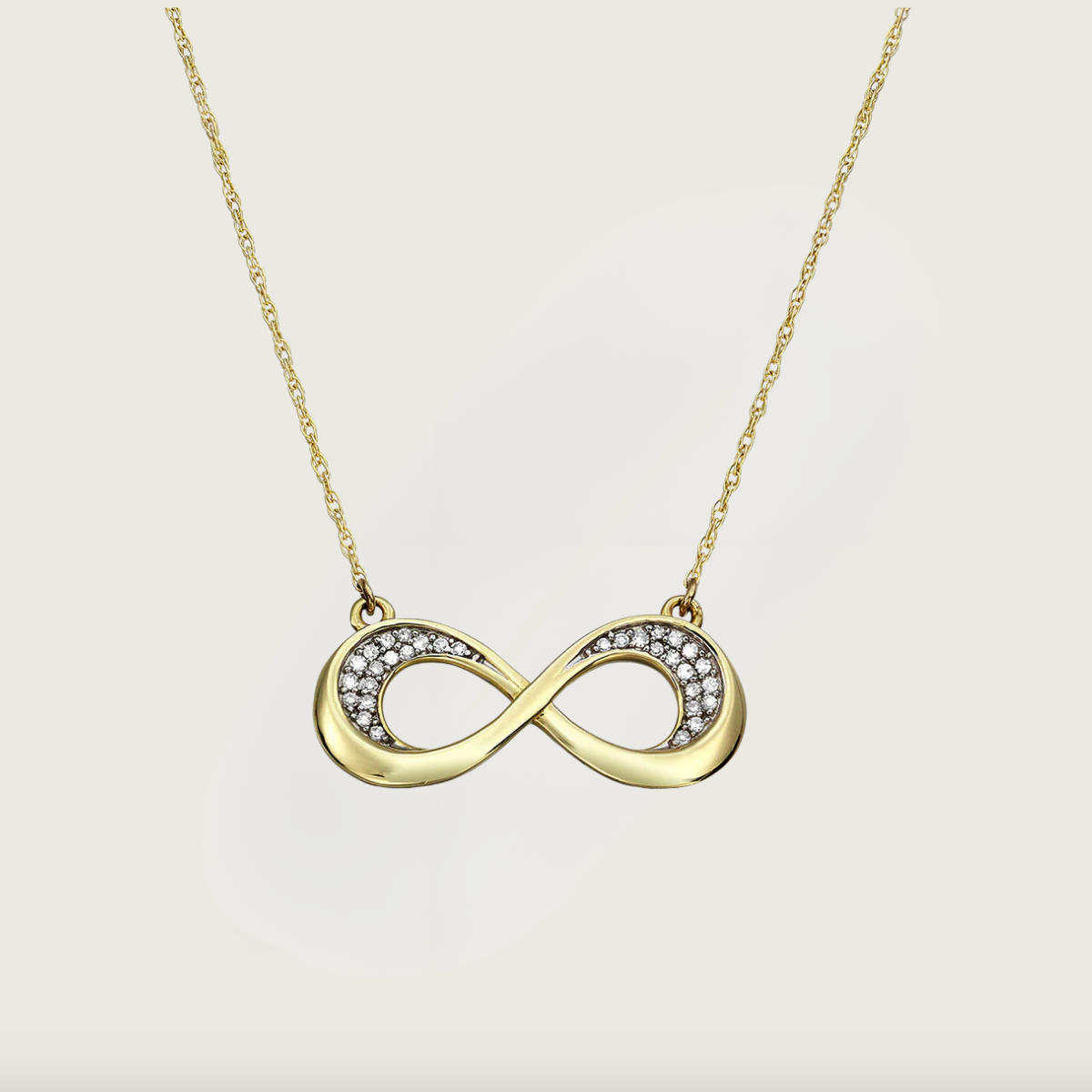 Bu zarif kolye, sonsuzluk sembolü ile tasarlanmış ve 14 ayar sarı altın ile işlenmiştir. Üzerinde yer alan pırlantalar, tasarıma göz alıcı bir parlaklık katmaktadır. Şıklığı ve anlam derinliğiyle öne çıkan bu kolye, hem günlük kullanımda hem de özel anlar için ideal bir tercih.
