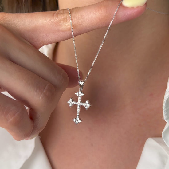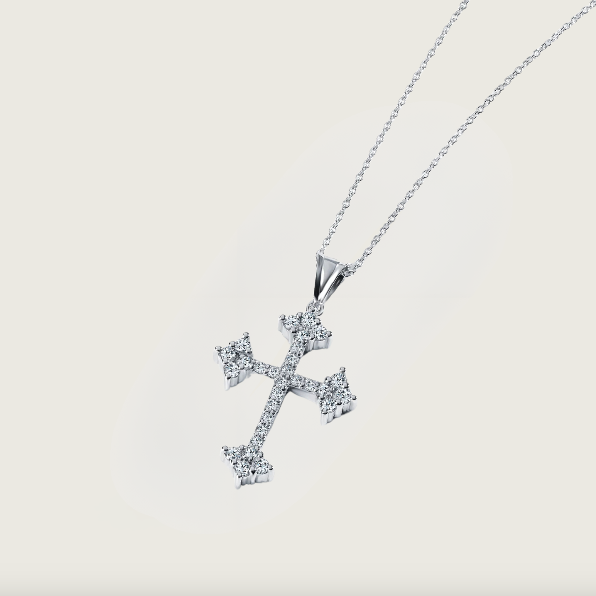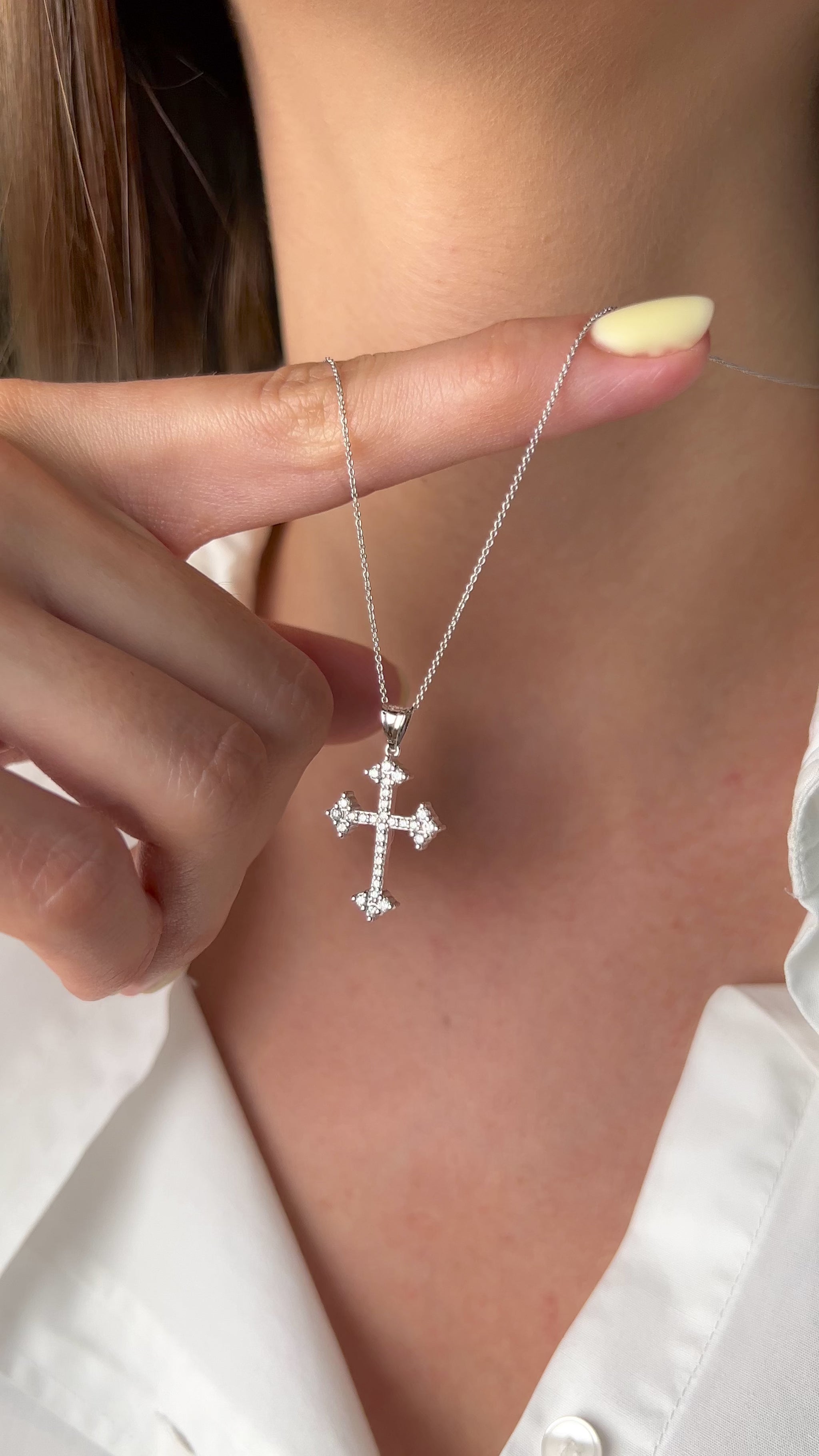 Sonsuz Haç Beyaz Altın Pırlanta Kolye
