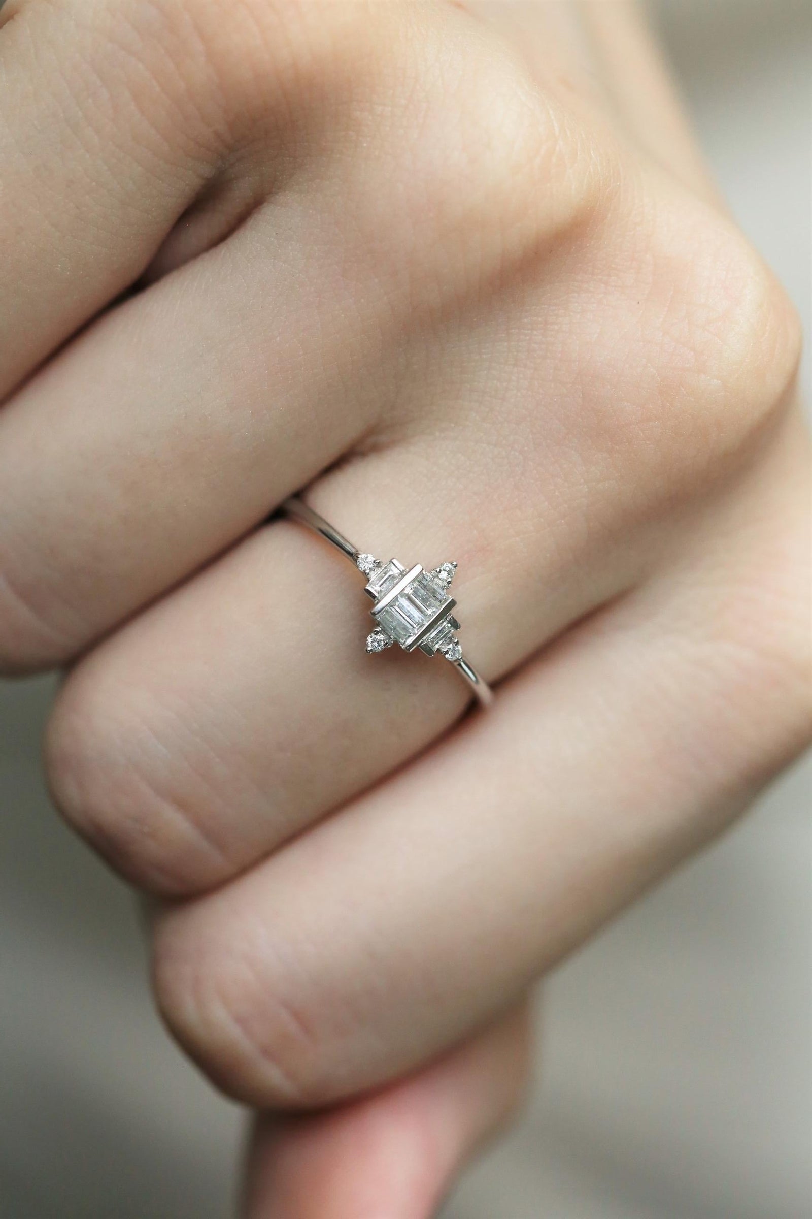Gökyüzünün en parlak yıldızlarından ilham alan Stellar Cut Baget Pırlanta Yüzük, zarif ve ince tasarımıyla göz kamaştırıyor. Baget kesim pırlantanın keskin çizgileri ve modern detayları, ince bant üzerine yerleştirilerek minimal bir şıklık sunuyor. Parıldayan taşlarıyla hem özel günlerinize hem de günlük stilinize eşlik edecek bu yüzük, zarafeti ve özgünlüğü bir arada sunar.
