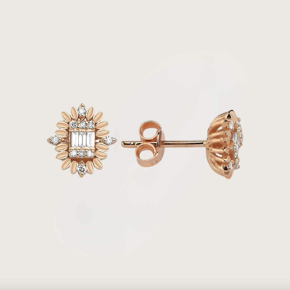 Sunrise Rose Altın Baget Pırlanta Küpe