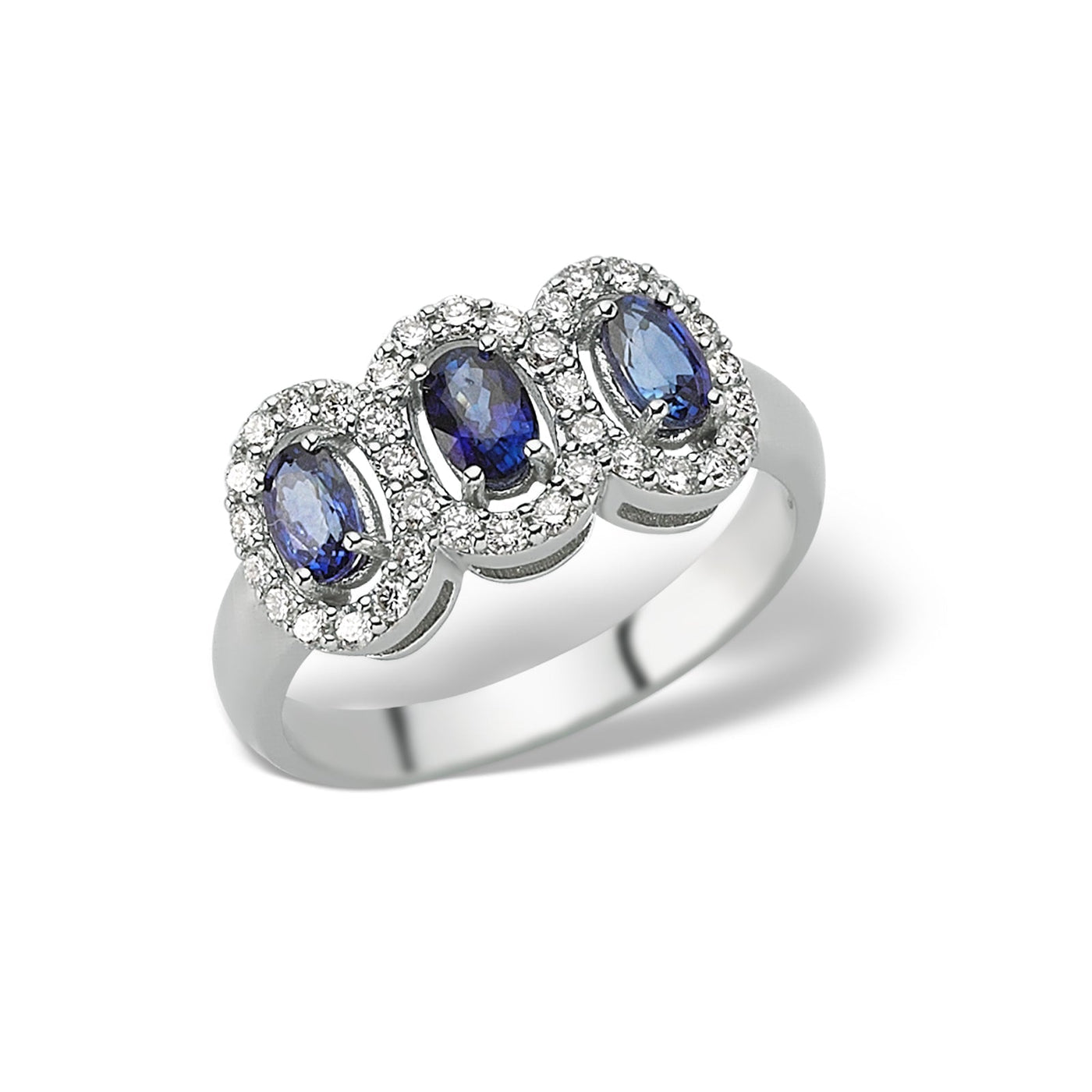 Üçlü Safir Işıltısı Pırlanta Yüzük