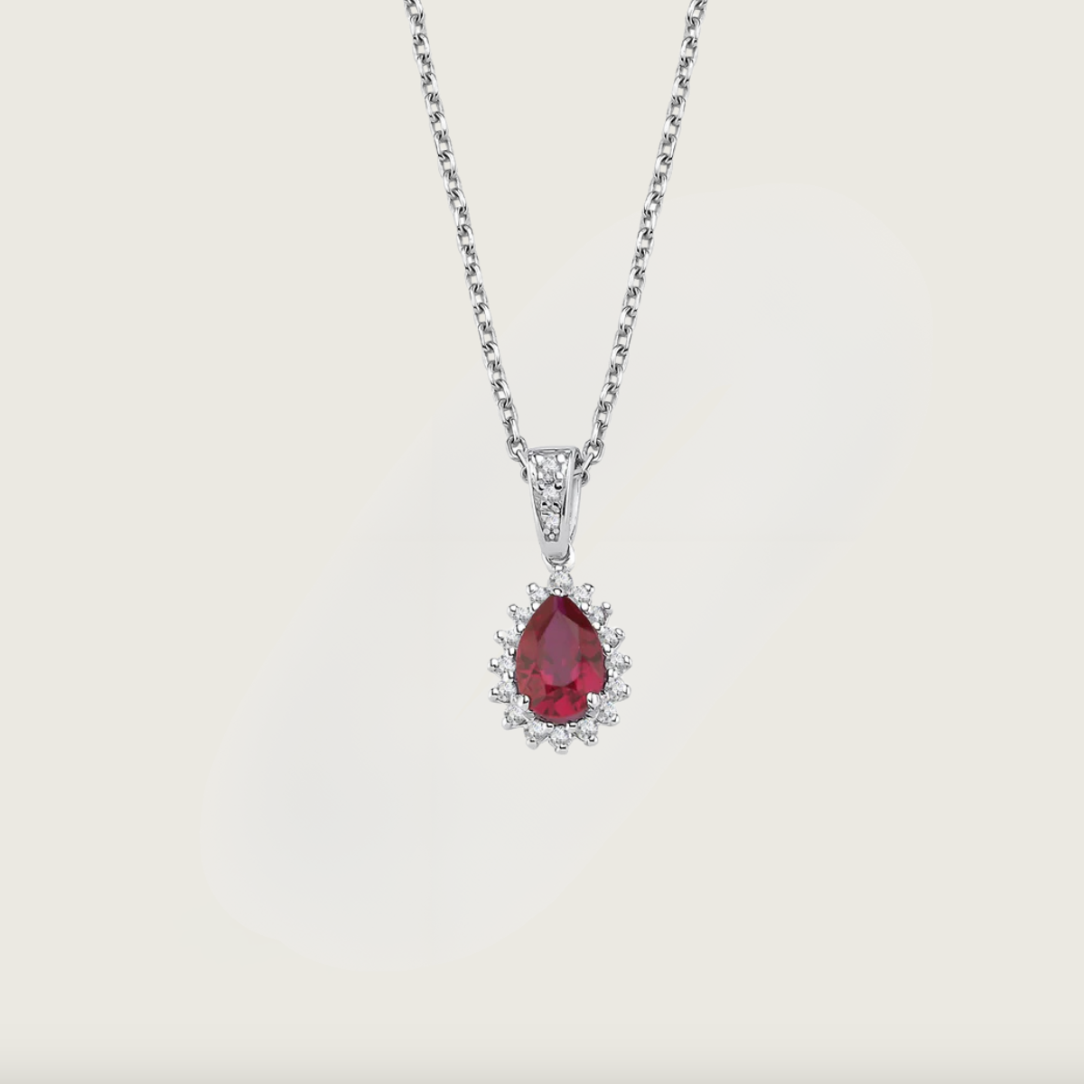 14 Ayar Beyaz Altın Kolye, 1,99 gram Bu muhteşem kolye, yakutun büyüleyici enerjisini ve elmasın parlaklığıyla buluşturuyor. 0,09 karat elmas ve 0,55 karat yakut ile tasarlanan bu göz alıcı mücevher, günlük kombinlerinize zarif ve dikkat çekici bir dokunuş katar. 45 cm uzunluğundaki ince beyaz altın zincir, rahat bir kullanım sağlarken, şık tasarımıyla tüm gözleri üzerinize çeker. Elmas berraklığı VS, elmas rengi H olan bu kolye, her ortamda sofistike bir stil sunar.