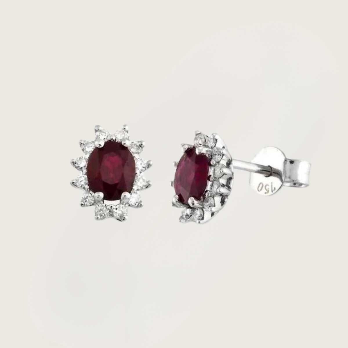 Yakut Parıltısı Beyaz Altın Pırlanta Küpe