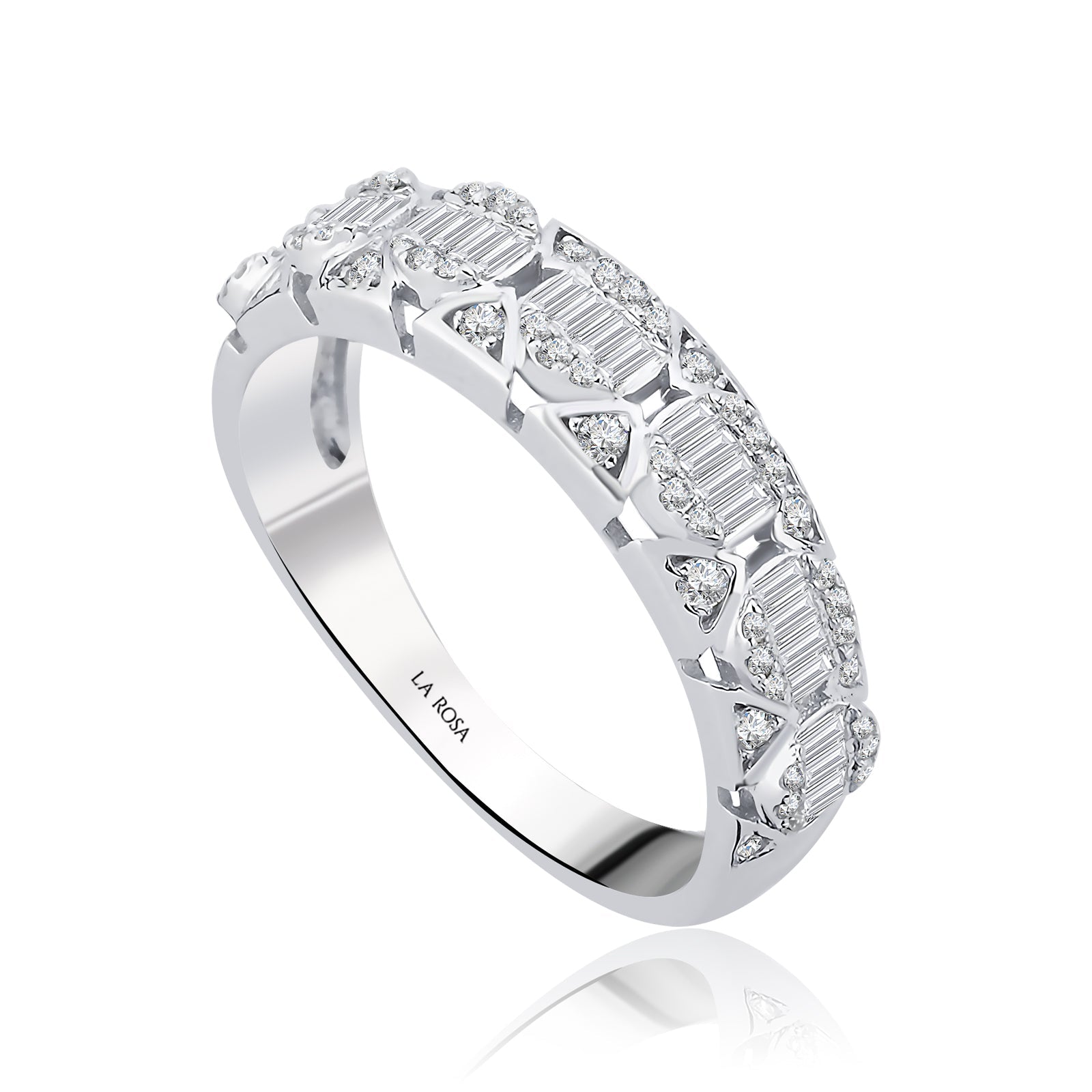 Yarım Tur Baget Pırlantalı Beyaz Altın Yüzük