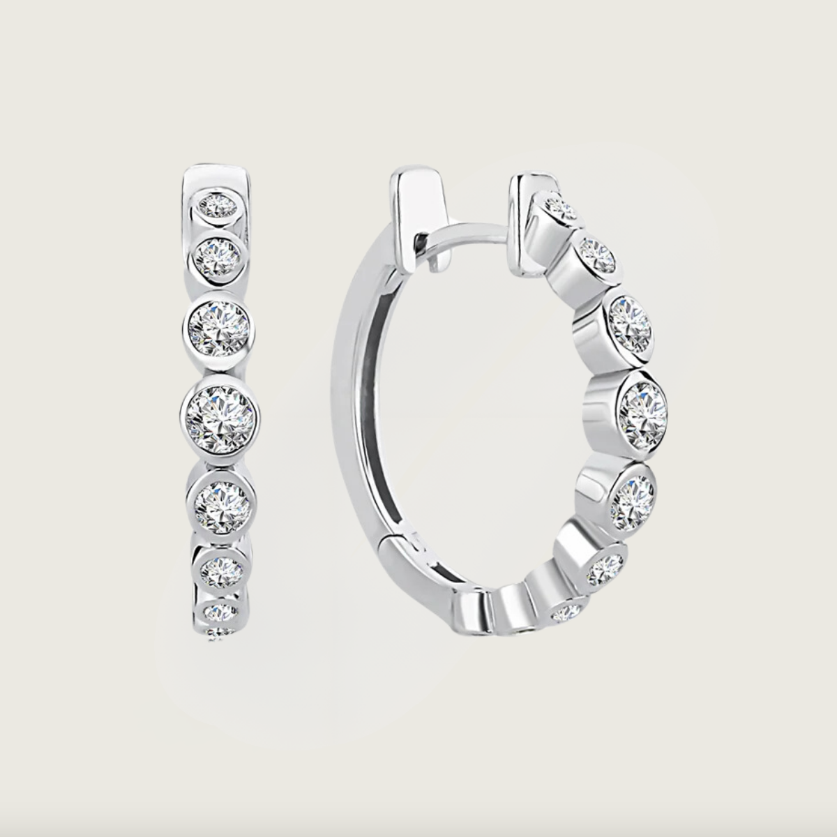 Yarımtur Beyaz Altın Pırlanta Halka Küpe