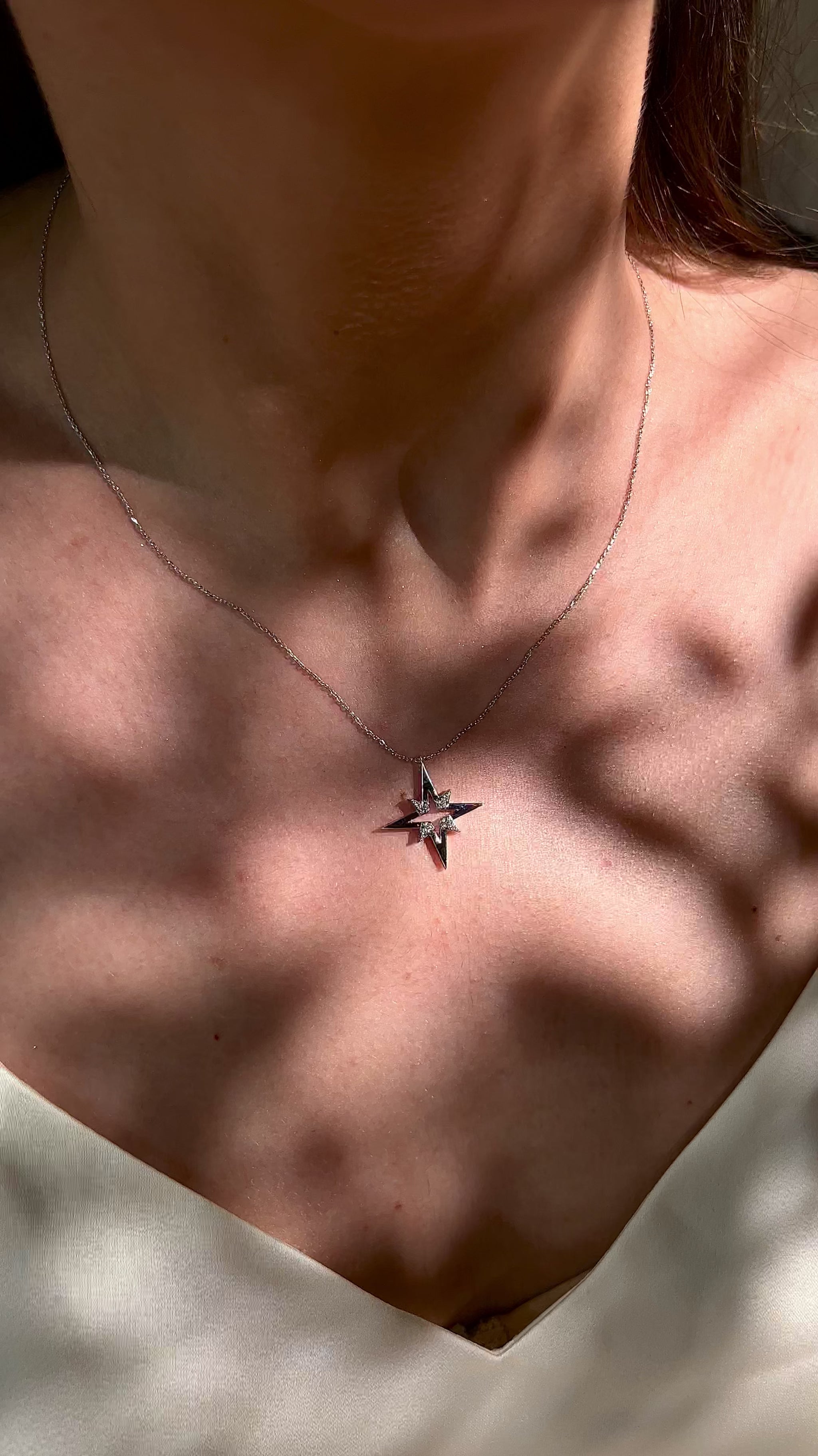 Zarif tasarımı ve göz alıcı detaylarıyla Yıldız Işıltısı Pırlanta Kolye, stilinize yıldız gibi parlayan bir dokunuş katıyor. Modern ve şık bir görünüm sunan bu kolye, pırlantaların ışıltısını yıldız formundaki tasarımıyla buluşturuyor.