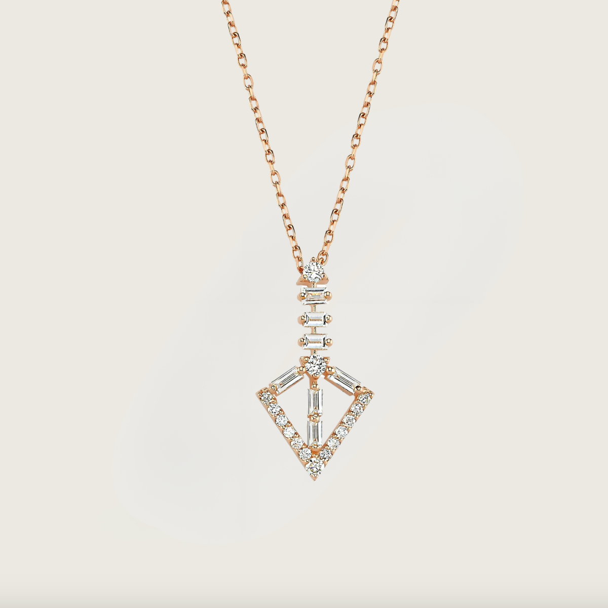 Modern tasarımıyla stilinize şıklık katmaya hazır. Özel olarak dizayn edilmiş kesimlerle, pırlantaların ışıltısını en iyi şekilde yansıtan bu kolye, günlük yaşamdan özel anlara kadar her türlü kombin için mükemmel bir tamamlayıcıdır. Keskin hatları ve dikkat çekici geometrik formu ile göz alıcı bir görünüm sunarak, her anınıza zarafet katmak için ideal bir seçenektir.